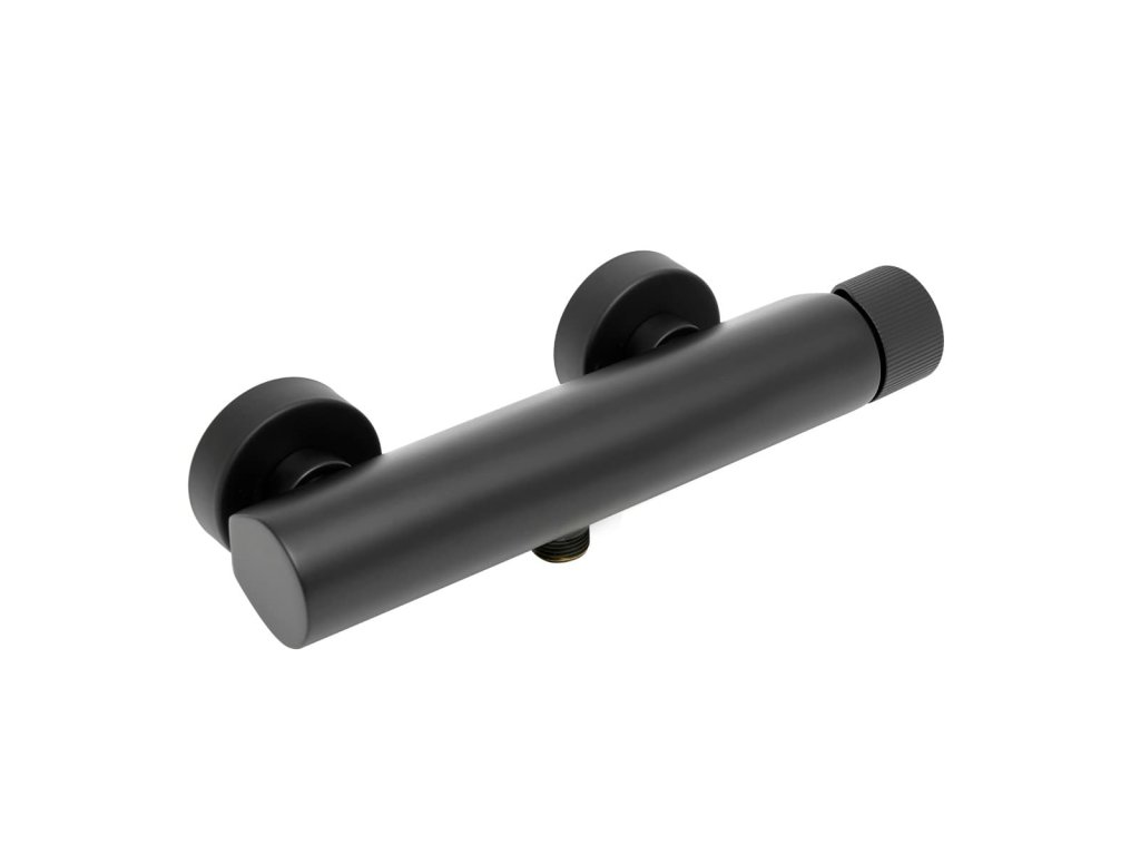 Páková nástenná sprchová batéria bez sprchovej súpravy v matnej čiernej farbe. Rozstup batérií 150 mm. S matným povrchom.Dodatočné parametre