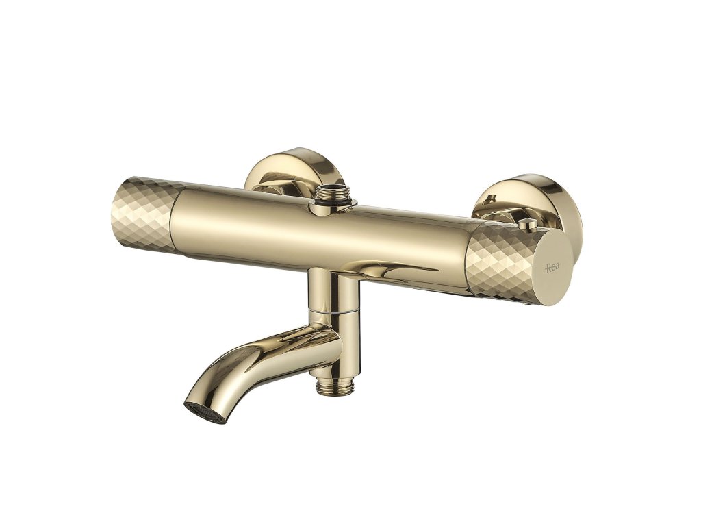 Sprchová sada s termostatom bola navrhnutá za účelom dosiahnutia Vášho maximálneho pohodlia a jedinečného dizajnu. Vysoká kvalita použitých materiálov zaručujú odolnosť a vysokú spoľahlivosť po mnoho rokov. Moderná, dizajnérska sprchová sada s neobyčajnými tvarmi série Rea Lungo obsahuje termostatickú batériu, vyrobenú z mosadze vysokej kvality v honosnom zlatoskvúcom prevedení. Lakovanie batérie bolo vykonané v troch vrstvách, vďaka čomu je batéria odolná voči korózii a strate farby. Ďalšie čiastkové prvky sú vyrobené z prvotriednych materiálov odolných voči poškodeniu.