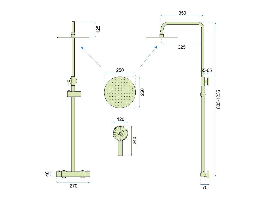 | Veľkosť hlavovej sprchy: | 25 x 25 cm |