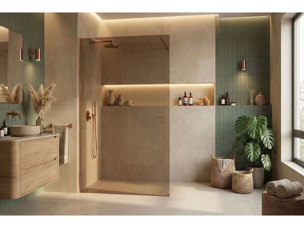 Snívate o kúpeľni plnej tepla a luxusu? Objavte sprchovú stenu walk-in Rea Flexi v jedinečnej konfigurácii: sklo v odtieni zadymenej hnedej a profil vo farbe kartáčovanej medi. Toto spojenie modernej formy a elegantného vyhotovenia dodáva interiéru osobitý charakter. Konštrukcia z bezpečného 8 mm tvrdeného skla zaručuje dlhú životnosť a stabilitu.8 mm tvrdené sklo (zadymená hnedá) – hrubé a bezpečné sklo s hnedým tónom, ktoré prináša do priestoru teplo a zabezpečuje súkromie.Hliníkový profil v kartáčovanej medi – luxusná kartáčovaná povrchová úprava profilu a stabilizačného ramena, dokonale ladiaca s hnedou sklenenou tabuľou.Povrchová úprava Easy Clean – neviditeľná hydrofóbna vrstva uľahčujúca stekanie vody a chrániaca pred usadeninami mydla a vodného kameňa.Stabilizačné rameno 120 cm s možnosťou skrátenia – horné rameno v medenom odtieni je možné prispôsobiť individuálnym požiadavkám.Univerzálna montáž – stenu možno namontovať na pravú alebo ľavú stranu, na vaničku alebo priamo na podlahu.Konštrukcia Walk-In – moderný otvorený vstup bez pohyblivých prvkov, ktorý zaručuje pohodlie a spoľahlivosť.Sprchová stena Rea Flexi je ideálnou voľbou pre tých, ktorí hľadajú vycibrený štýl. Medené detaily v kombinácii s hnedým sklom vytvárajú kúpeľnú zónu s výnimočnou atmosférou. Vďaka povrchovej úprave Easy Clean a kvalitným materiálom spája produkt vysokú estetiku s každodennou funkčnosťou.Dodatočné parametre