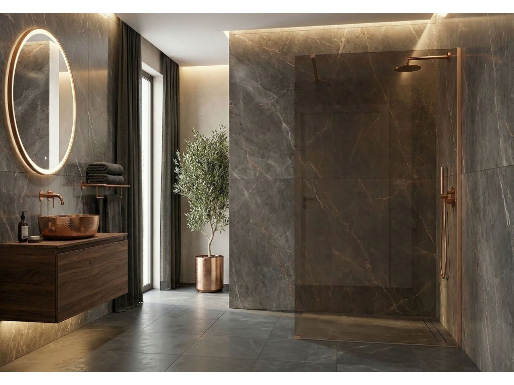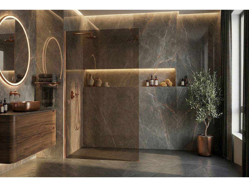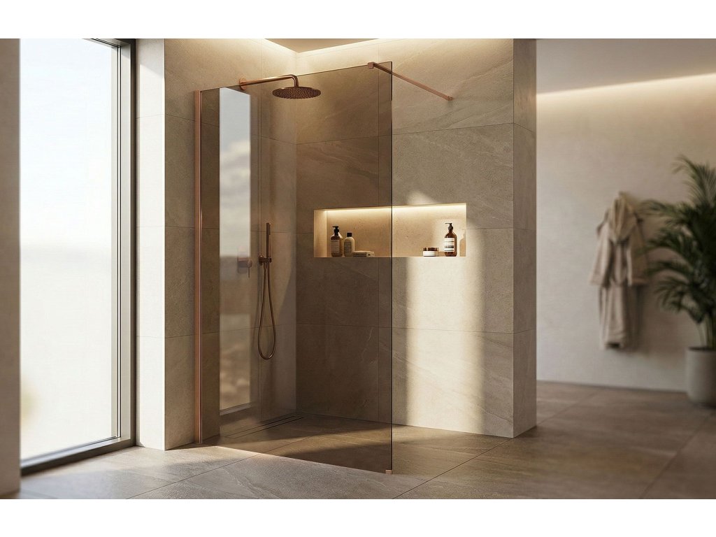 Snívate o kúpeľni plnej tepla a luxusu? Objavte sprchovú stenu walk-in Rea Flexi v jedinečnej konfigurácii: sklo v odtieni zadymenej hnedej a profil vo farbe kartáčovanej medi. Toto spojenie modernej formy a elegantného vyhotovenia dodáva interiéru osobitý charakter. Konštrukcia z bezpečného 8 mm tvrdeného skla zaručuje dlhú životnosť a stabilitu.8 mm tvrdené sklo (zadymená hnedá) – hrubé a bezpečné sklo s hnedým tónom, ktoré prináša do priestoru teplo a zabezpečuje súkromie.Hliníkový profil v kartáčovanej medi – luxusná kartáčovaná povrchová úprava profilu a stabilizačného ramena, dokonale ladiaca s hnedou sklenenou tabuľou.Povrchová úprava Easy Clean – neviditeľná hydrofóbna vrstva uľahčujúca stekanie vody a chrániaca pred usadeninami mydla a vodného kameňa.Stabilizačné rameno 120 cm s možnosťou skrátenia – horné rameno v medenom odtieni je možné prispôsobiť individuálnym požiadavkám.Univerzálna montáž – stenu možno namontovať na pravú alebo ľavú stranu, na vaničku alebo priamo na podlahu.Konštrukcia Walk-In – moderný otvorený vstup bez pohyblivých prvkov, ktorý zaručuje pohodlie a spoľahlivosť.Sprchová stena Rea Flexi je ideálnou voľbou pre tých, ktorí hľadajú vycibrený štýl. Medené detaily v kombinácii s hnedým sklom vytvárajú kúpeľnú zónu s výnimočnou atmosférou. Vďaka povrchovej úprave Easy Clean a kvalitným materiálom spája produkt vysokú estetiku s každodennou funkčnosťou.Dodatočné parametre
