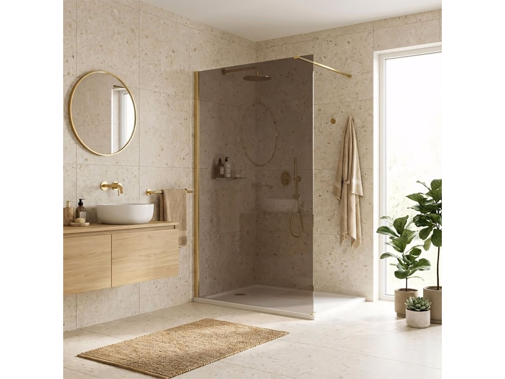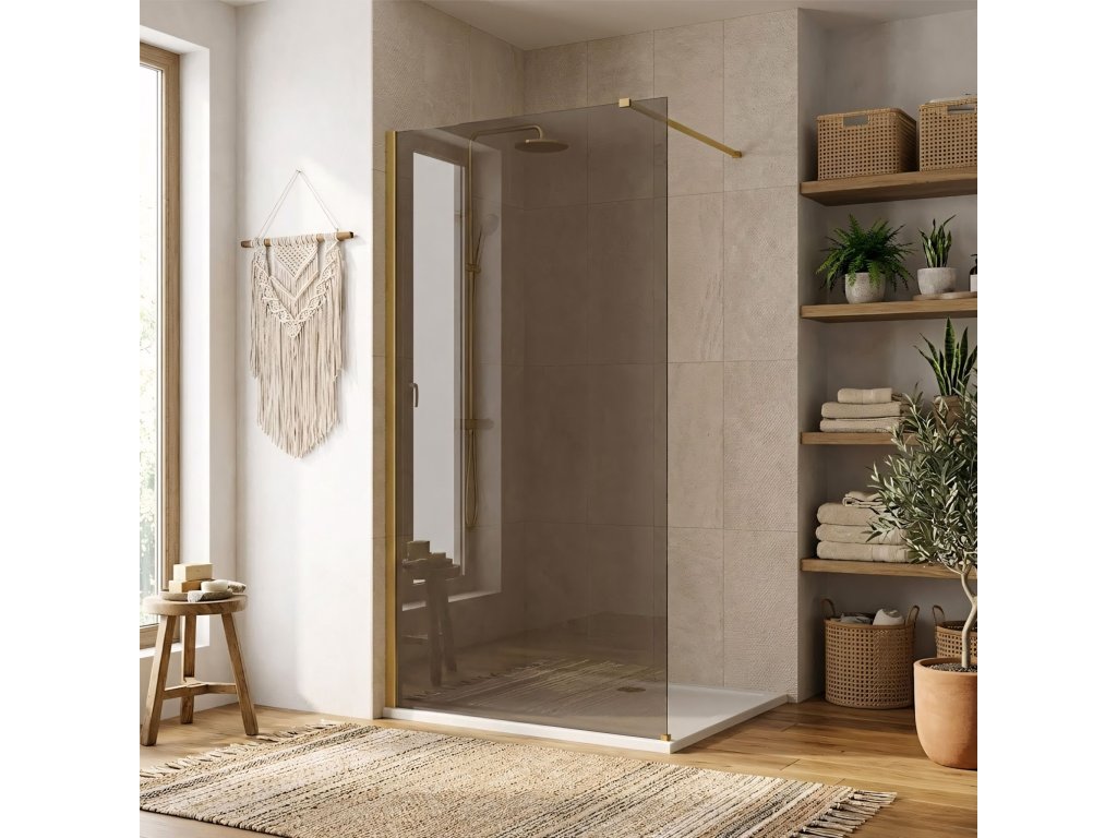 Snívate o kúpeľni plnej tepla a luxusu? Objavte sprchovú stenu walk-in Rea Flexi v jedinečnej konfigurácii: sklo v odtieni Smoked Brown a profil v farbe Brushed Gold. Toto spojenie modernej formy a elegantnej povrchovej úpravy dodáva interiéru výnimočný charakter. Konštrukcia z bezpečného 8 mm tvrdeného skla zaručuje odolnosť a stabilitu.8 mm tvrdené sklo (Smoked Brown) – hrubé, bezpečné sklo s hnedým zafarbením, ktoré vnáša do kúpeľne teplo a poskytuje súkromie.Hliníkový profil Brushed Gold – luxusná, brúsená povrchová úprava profilu a ramena, ktorá krásne ladí s hnedou sklenenou tabuľou.Easy Clean povrch – neviditeľná hydrofóbna bariéra uľahčujúca odtekanie vody a chrániaca pred usadzovaním mydla a vodného kameňa.Vzpiera 120 cm s možnosťou skrátenia – horné zlaté rameno je možné skrátiť a prispôsobiť tak hĺbku sprchovej kabíny individuálnym potrebám.Univerzálna montáž – stenu možno nainštalovať na pravú aj ľavú stranu, na sprchovú vaničku alebo priamo na podlahu.Walk-in konštrukcia – moderný, otvorený vstup bez pohyblivých prvkov, ktorý zaručuje pohodlné a bezporuchové používanie.Sprchová stena Rea Flexi je určená pre tých, ktorí hľadajú vycibrený štýl. Zlaté detaily v kombinácii s hnedým sklom vytvárajú sprchovaciu zónu s výnimočnou atmosférou. Vďaka povrchu Easy Clean a pevným materiálom spája tento produkt vysokú estetiku s každodennou funkčnosťou.Dodatočné parametre