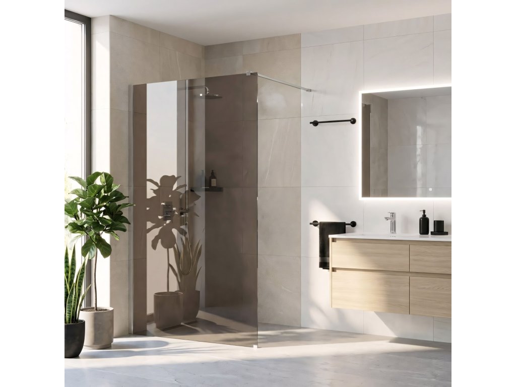 Stavte na nadčasovú eleganciu vo svojej kúpeľni so sprchovou stenou walk-in Rea Flexi v konfigurácii: sklo Smoked Brown a profil v farbe Chróm. Ide o harmonické spojenie klasickej povrchovej úpravy s modernou, zatmavenou sklenenou tabuľou. Konštrukcia z bezpečného 8 mm tvrdeného skla zaručuje stabilitu a bezpečné používanie.8 mm tvrdené sklo (Smoked Brown) – pevná tabuľa s hnedým nádychom, ktorá vytvára teplú atmosféru a poskytuje súkromie pri sprchovaní.Hliníkový profil Chróm – klasické, lesklé vyhotovenie profilu, ktoré dokonale ladí s tradičnou kúpeľňovou armatúrou.Easy Clean povrch – hydrofóbna ochranná vrstva uľahčujúca čistenie a brániaca usadzovaniu vodného kameňa.Vzpiera 120 cm s možnosťou skrátenia – chrómované stabilizačné rameno, ktoré možno skrátiť na požadovanú dĺžku a prispôsobiť kabínu priestoru.Univerzálna montáž – možnosť inštalácie steny na pravú alebo ľavú stranu, na sprchovú vaničku alebo priamo na podlahu.Walk-in konštrukcia – minimalistické riešenie bez dverí, ktoré poskytuje voľný prístup a moderný vzhľad.Sprchová stena Rea Flexi je ideálnou voľbou pre tých, ktorí oceňujú overené riešenia v modernej podobe. Kombinácia chrómových detailov s hnedým sklom vytvára elegantný a funkčný sprchový priestor. Vďaka úprave Easy Clean a pevným komponentom ponúka tento produkt komfort a dlhú životnosť.Dodatočné parametre