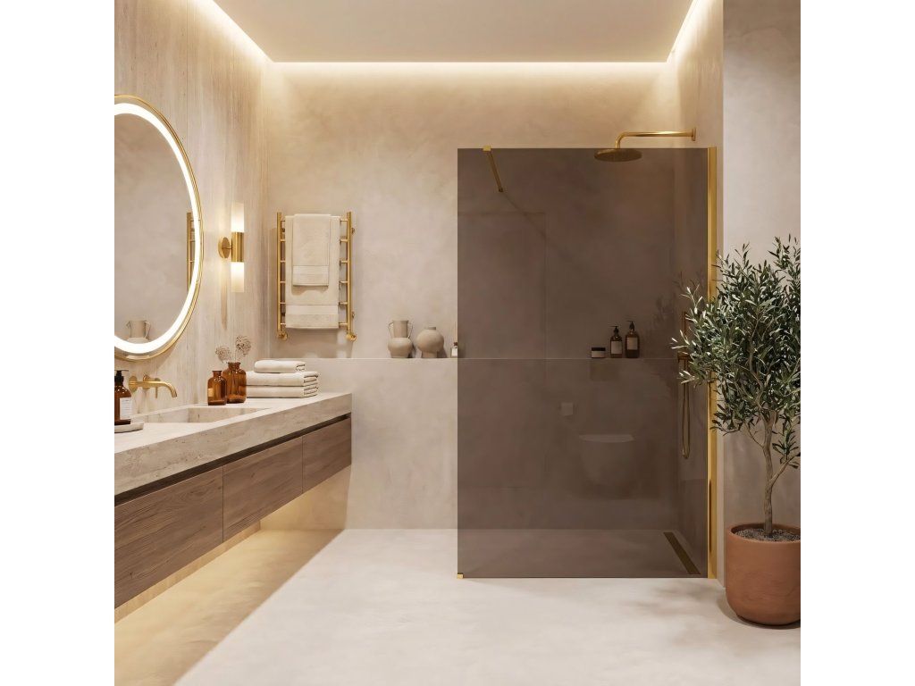 Vytvorte vo svojej kúpeľni atmosféru teplého luxusu vďaka walk-in sprchovej stene Rea Flexi v jedinečnej konfigurácii: sklo v odtieni Dymová Hnedá a profil v farbe Lesklé Zlato. Harmonické spojenie tmavšieho hnedého skla a žiarivých detailov vytvára mimoriadne elegantný a útulný priestor. Konštrukcia z 8 mm kaleného skla zabezpečuje stabilitu a bezpečné používanie.8 mm kalené sklo (Dymová Hnedá) – odolné sklo s teplým hnedým tónom, ktoré zútulní interiér, poskytne diskrétnosť a skvelo ladí so zlatými doplnkami.Hliníkový profil Lesklé Zlato – efektná lesklá úprava profilu a ramena, ktorá krásne odráža svetlo.Povrch Easy Clean – neviditeľná hydrofóbna bariéra uľahčujúca stekanie vody a ochranu pred usadeninami.Stabilizačné rameno 120 cm, skrátiteľné – možnosť úpravy na mieru pre ideálne prispôsobenie.Univerzálna montáž – montáž na pravú alebo ľavú stranu, na vaničku alebo priamo na podlahu.Walk-In konštrukcia – otvorený vstup bez dverí, ktorý zaručuje voľnosť pohybu.Sprchová stena Rea Flexi je voľbou pre milovníkov nadčasovej klasiky v modernom prevedení. Kombinácia lesklého zlata a hnedej vytvára rafinovanú kompozíciu, ktorá interiér príjemne zohreje. Vďaka kvalitným materiálom a úprave Easy Clean je produkt krásny aj praktický.Dodatočné parametre