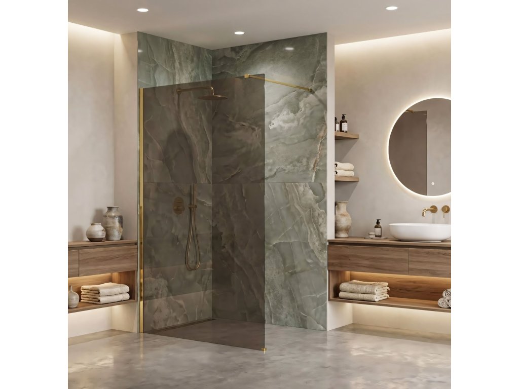 Vytvorte vo svojej kúpeľni atmosféru teplého luxusu vďaka walk-in sprchovej stene Rea Flexi v jedinečnej konfigurácii: sklo v odtieni Dymová Hnedá a profil v farbe Lesklé Zlato. Harmonické spojenie tmavšieho hnedého skla a žiarivých detailov vytvára mimoriadne elegantný a útulný priestor. Konštrukcia z 8 mm kaleného skla zabezpečuje stabilitu a bezpečné používanie.8 mm kalené sklo (Dymová Hnedá) – odolné sklo s teplým hnedým tónom, ktoré zútulní interiér, poskytne diskrétnosť a skvelo ladí so zlatými doplnkami.Hliníkový profil Lesklé Zlato – efektná lesklá úprava profilu a ramena, ktorá krásne odráža svetlo.Povrch Easy Clean – neviditeľná hydrofóbna bariéra uľahčujúca stekanie vody a ochranu pred usadeninami.Stabilizačné rameno 120 cm, skrátiteľné – možnosť úpravy na mieru pre ideálne prispôsobenie.Univerzálna montáž – montáž na pravú alebo ľavú stranu, na vaničku alebo priamo na podlahu.Walk-In konštrukcia – otvorený vstup bez dverí, ktorý zaručuje voľnosť pohybu.Sprchová stena Rea Flexi je voľbou pre milovníkov nadčasovej klasiky v modernom prevedení. Kombinácia lesklého zlata a hnedej vytvára rafinovanú kompozíciu, ktorá interiér príjemne zohreje. Vďaka kvalitným materiálom a úprave Easy Clean je produkt krásny aj praktický.Dodatočné parametre