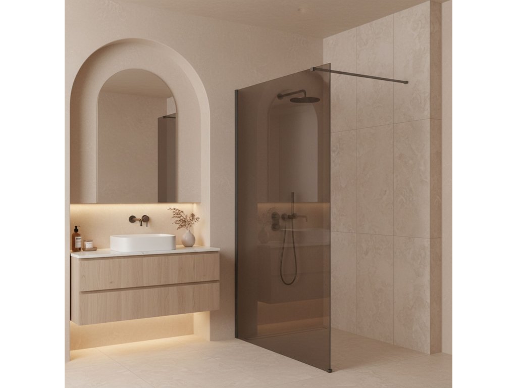 Hľadáte riešenie, ktoré dodá vašej kúpeľni jedinečný, dizajnový charakter? Zvoľte sprchovú stenu walk-in Rea Flexi v originálnom prevedení: sklo v odtieni Dymovo Hnedá a profily vo farbe brúsený titán. Ide o kompozíciu, ktorá spája teplo tónovaného skla so surovou eleganciou metalického, matného povrchu. Konštrukcia zo spoľahlivého 8 mm kaleného skla zaručuje stabilitu a bezpečnosť.Kalené sklo 8 mm (Dymovo Hnedá) – odolná tabuľa s elegantným hnedým zafarbením, ktorá vytvára príjemnú atmosféru a poskytuje pocit súkromia.Hliníkový profil brúsený titán – výnimočná matná povrchová úprava v titánovom odtieni, moderná a ušľachtilá alternatíva ku klasickému chrómu.Povrchová úprava Easy Clean – technológia uľahčujúca údržbu tým, že odpudzuje vodu a obmedzuje usádzanie vodného kameňa.Vzpera 120 cm s možnosťou skrátenia – stabilizačné rameno v titánovej farbe, ktoré možno jednoducho zrezať a prispôsobiť šírke sprchovej zóny.Univerzálna montáž – flexibilná inštalácia: stenu je možné namontovať ako pravú aj ľavú, na vaničku alebo priamo na podlahu.Konštrukcia Walk-In – priestranný vstup bez bariér, mimoriadne pohodlný a zvýrazňujúci minimalistický štýl kúpeľne.Sprchová stena Rea Flexi je výbornou voľbou pre milovníkov neoczywistych rozwiązań. Hnedý odtieň skla v kombinácii s brúseným titánom vytvára kompaktný a veľmi efektný celok. Kvalitné spracovanie a ochranná vrstva z nej robia investíciu do komfortu a vycibreného štýlu na dlhé roky.Dodatočné parametre