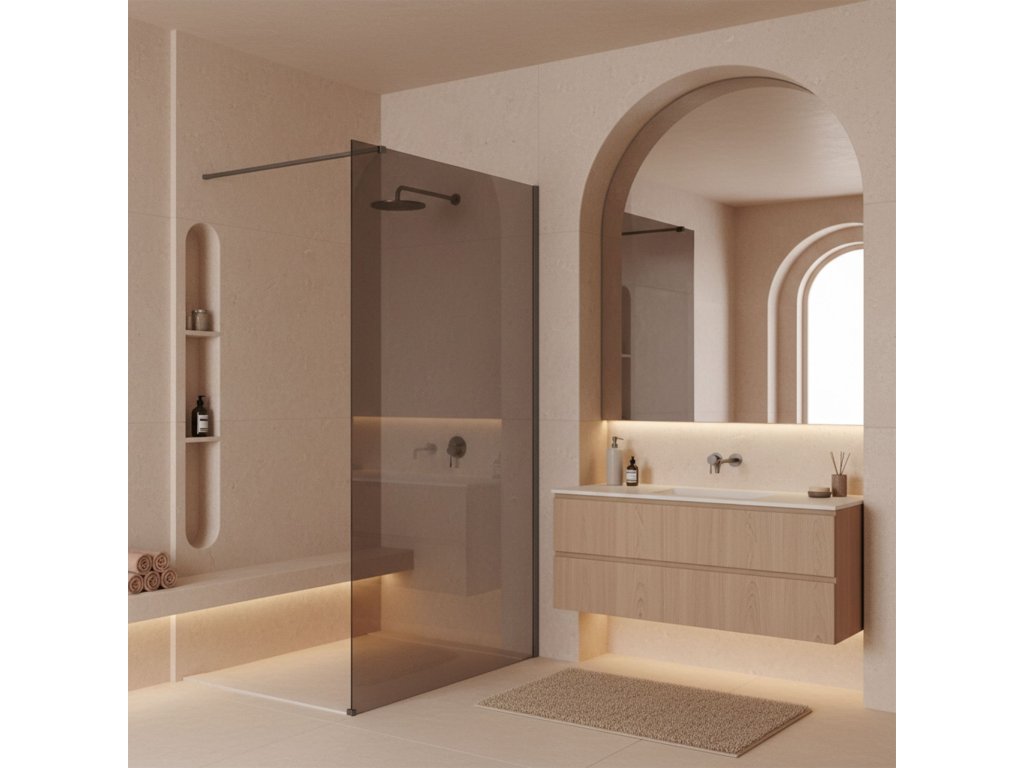 Hľadáte riešenie, ktoré dodá vašej kúpeľni jedinečný, dizajnový charakter? Zvoľte sprchovú stenu walk-in Rea Flexi v originálnom prevedení: sklo v odtieni Dymovo Hnedá a profily vo farbe brúsený titán. Ide o kompozíciu, ktorá spája teplo tónovaného skla so surovou eleganciou metalického, matného povrchu. Konštrukcia zo spoľahlivého 8 mm kaleného skla zaručuje stabilitu a bezpečnosť.Kalené sklo 8 mm (Dymovo Hnedá) – odolná tabuľa s elegantným hnedým zafarbením, ktorá vytvára príjemnú atmosféru a poskytuje pocit súkromia.Hliníkový profil brúsený titán – výnimočná matná povrchová úprava v titánovom odtieni, moderná a ušľachtilá alternatíva ku klasickému chrómu.Povrchová úprava Easy Clean – technológia uľahčujúca údržbu tým, že odpudzuje vodu a obmedzuje usádzanie vodného kameňa.Vzpera 120 cm s možnosťou skrátenia – stabilizačné rameno v titánovej farbe, ktoré možno jednoducho zrezať a prispôsobiť šírke sprchovej zóny.Univerzálna montáž – flexibilná inštalácia: stenu je možné namontovať ako pravú aj ľavú, na vaničku alebo priamo na podlahu.Konštrukcia Walk-In – priestranný vstup bez bariér, mimoriadne pohodlný a zvýrazňujúci minimalistický štýl kúpeľne.Sprchová stena Rea Flexi je výbornou voľbou pre milovníkov neoczywistych rozwiązań. Hnedý odtieň skla v kombinácii s brúseným titánom vytvára kompaktný a veľmi efektný celok. Kvalitné spracovanie a ochranná vrstva z nej robia investíciu do komfortu a vycibreného štýlu na dlhé roky.Dodatočné parametre