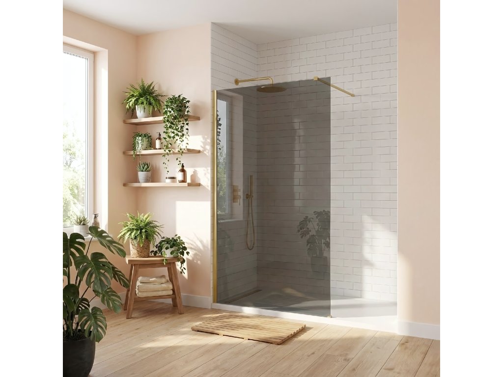 Vytvorte si vo svojej kúpeľni relaxačnú zónu s jedinečným a elegantným charakterom. Vyberte si sprchovú stenu walk-in Rea Flexi v efektnom vyhotovení: sklo v sivom odtieni a profily vo farbe Kartáčované zlato. Toto spojenie modernej, stmavenej tabule a teplého povrchu profilov dodáva interiéru triedu. Konštrukcia z bezpečného 8 mm tvrdeného skla zaručuje trvácnosť a bezpečnosť.Tvrdené sklo 8 mm (Sivé) – pevná tabuľa s elegantným sivým zafarbením, ktorá vytvára modernú atmosféru, poskytuje diskrétnosť a pekne kontrastuje so zlatom.Hliníkový profil Kartáčované zlato – štýlové vyhotovenie nástenného profilu, ktoré tvorí výrazný dekoratívny akcent.Easy Clean povlak – neviditeľná hydrofóbna vrstva uľahčujúca odtekanie vody a chrániaca sklo pred usadzovaním vodného kameňa.Vzpiera 120 cm s možnosťou skrátenia – horné stabilizačné rameno v zlatej farbe je možné skrátiť, aby sa hĺbka kabíny prispôsobila rozmerom kúpeľne.Univerzálna montáž – stenu možno nainštalovať na pravú aj ľavú stranu, na sprchovú vaničku alebo priamo na podlahu s líniovým odtokom.Walk-In konštrukcia – minimalistický, otvorený vstup bez dverí, ktorý zaručuje pohodlné používanie a moderný vzhľad.Sprchová stena Rea Flexi je určená pre tých, ktorí hľadajú neobyčajné a vkusné kombinácie. Kartáčované zlaté prvky v spojení so sivou sklenenou tabuľou vytvárajú mimoriadne efektnú kompozíciu. Vďaka povlaku Easy Clean a kvalitným materiálom výrobok spája estetiku, funkčnosť a jednoduchú údržbu.Dodatočné parametre