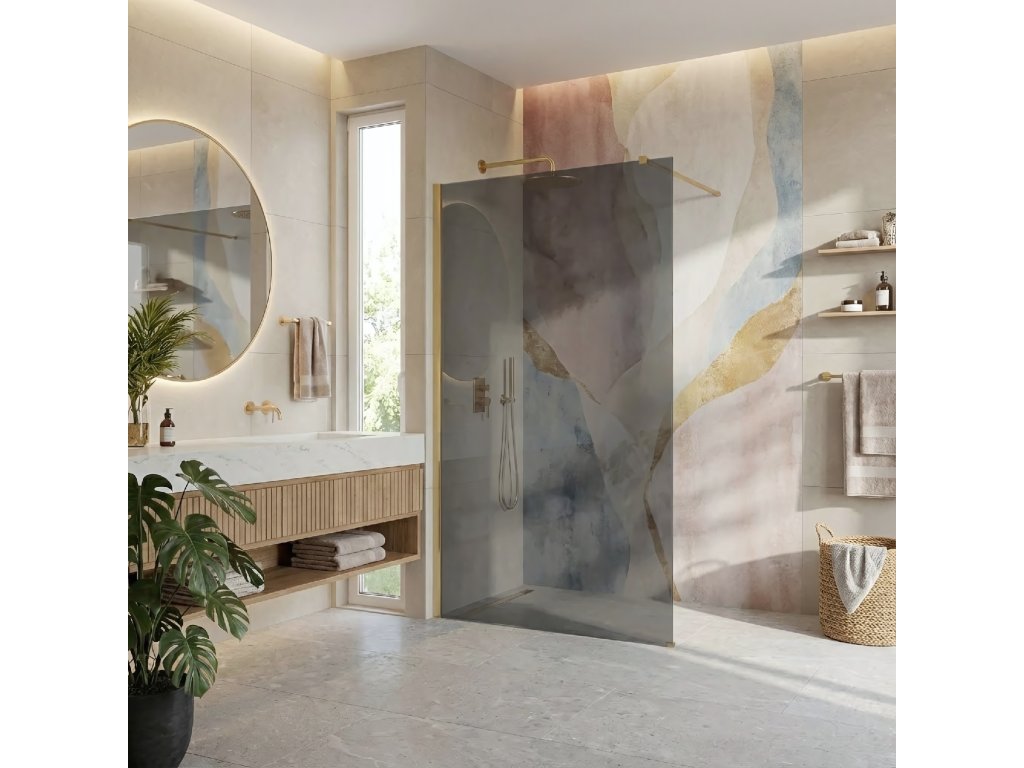 Vytvorte si vo svojej kúpeľni relaxačnú zónu s jedinečným a elegantným charakterom. Vyberte si sprchovú stenu walk-in Rea Flexi v efektnom vyhotovení: sklo v sivom odtieni a profily vo farbe Kartáčované zlato. Toto spojenie modernej, stmavenej tabule a teplého povrchu profilov dodáva interiéru triedu. Konštrukcia z bezpečného 8 mm tvrdeného skla zaručuje trvácnosť a bezpečnosť.Tvrdené sklo 8 mm (Sivé) – pevná tabuľa s elegantným sivým zafarbením, ktorá vytvára modernú atmosféru, poskytuje diskrétnosť a pekne kontrastuje so zlatom.Hliníkový profil Kartáčované zlato – štýlové vyhotovenie nástenného profilu, ktoré tvorí výrazný dekoratívny akcent.Easy Clean povlak – neviditeľná hydrofóbna vrstva uľahčujúca odtekanie vody a chrániaca sklo pred usadzovaním vodného kameňa.Vzpiera 120 cm s možnosťou skrátenia – horné stabilizačné rameno v zlatej farbe je možné skrátiť, aby sa hĺbka kabíny prispôsobila rozmerom kúpeľne.Univerzálna montáž – stenu možno nainštalovať na pravú aj ľavú stranu, na sprchovú vaničku alebo priamo na podlahu s líniovým odtokom.Walk-In konštrukcia – minimalistický, otvorený vstup bez dverí, ktorý zaručuje pohodlné používanie a moderný vzhľad.Sprchová stena Rea Flexi je určená pre tých, ktorí hľadajú neobyčajné a vkusné kombinácie. Kartáčované zlaté prvky v spojení so sivou sklenenou tabuľou vytvárajú mimoriadne efektnú kompozíciu. Vďaka povlaku Easy Clean a kvalitným materiálom výrobok spája estetiku, funkčnosť a jednoduchú údržbu.Dodatočné parametre