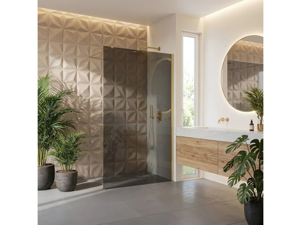 Vytvorte si vo svojej kúpeľni relaxačnú zónu s jedinečným a elegantným charakterom. Vyberte si sprchovú stenu walk-in Rea Flexi v efektnom vyhotovení: sklo v sivom odtieni a profily vo farbe Kartáčované zlato. Toto spojenie modernej, stmavenej tabule a teplého povrchu profilov dodáva interiéru triedu. Konštrukcia z bezpečného 8 mm tvrdeného skla zaručuje trvácnosť a bezpečnosť.Tvrdené sklo 8 mm (Sivé) – pevná tabuľa s elegantným sivým zafarbením, ktorá vytvára modernú atmosféru, poskytuje diskrétnosť a pekne kontrastuje so zlatom.Hliníkový profil Kartáčované zlato – štýlové vyhotovenie nástenného profilu, ktoré tvorí výrazný dekoratívny akcent.Easy Clean povlak – neviditeľná hydrofóbna vrstva uľahčujúca odtekanie vody a chrániaca sklo pred usadzovaním vodného kameňa.Vzpiera 120 cm s možnosťou skrátenia – horné stabilizačné rameno v zlatej farbe je možné skrátiť, aby sa hĺbka kabíny prispôsobila rozmerom kúpeľne.Univerzálna montáž – stenu možno nainštalovať na pravú aj ľavú stranu, na sprchovú vaničku alebo priamo na podlahu s líniovým odtokom.Walk-In konštrukcia – minimalistický, otvorený vstup bez dverí, ktorý zaručuje pohodlné používanie a moderný vzhľad.Sprchová stena Rea Flexi je určená pre tých, ktorí hľadajú neobyčajné a vkusné kombinácie. Kartáčované zlaté prvky v spojení so sivou sklenenou tabuľou vytvárajú mimoriadne efektnú kompozíciu. Vďaka povlaku Easy Clean a kvalitným materiálom výrobok spája estetiku, funkčnosť a jednoduchú údržbu.Dodatočné parametre