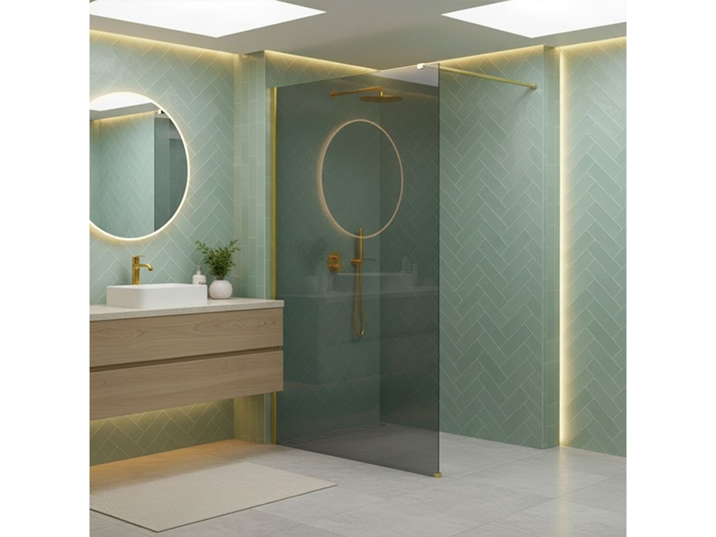 Zvýraznite jedinečný charakter svojej kúpeľne voľbou walk-in sprchovej steny Rea Flexi so sivým sklom a profilmi vo farbe zlatý lesk. Toto vycibrené spojenie tmavšej grafitovej tabule s lesklou úpravou dodáva interiéru modernú eleganciu. Konštrukcia zo solídneho 8 mm kaleného skla zaručuje bezpečnosť a dlhú životnosť.8 mm kalené sklo (sivé) – odolná tabuľa s hlbokým sivým zafarbením, ktorá vytvára intímnejšiu atmosféru, poskytuje súkromie a je moderným pozadím pre lesklé detaily.Hliníkový profil zlatý lesk – efektné zrkadlové vyhotovenie nástenného profilu, ktoré krásne odráža svetlo a kontrastuje s tmavším sklom.Povrchová úprava Easy Clean – moderná hydrofóbna vrstva, vďaka ktorej voda rýchlejšie steká a obmedzuje usadzovanie mydla a vodného kameňa.Stabilizačné rameno 120 cm s reguláciou – podperná tyč v zlatom lesku, s možnosťou skrátenia na mieru pre presné nastavenie hĺbky sprchovej zóny.Univerzálna montáž – voľnosť pri inštalácii: montáž vpravo alebo vľavo, na vaničku alebo priamo na dlažbu s odtokom.Walk-In konštrukcia – minimalistický otvorený vstup bez dverí a prahov, pre maximálne pohodlie a ľahký prístup.Sprchová stena Rea Flexi Gold Gloss Grey je voľbou pre tých, ktorí hľadajú netradičný dizajn. Kombinácia sivého skla a lesklého zlata vytvára luxusný a výrazný efekt. Vďaka povrchovej úprave Easy Clean a kvalitným materiálom spája dekoratívny vzhľad s funkčnosťou.Dodatočné parametre