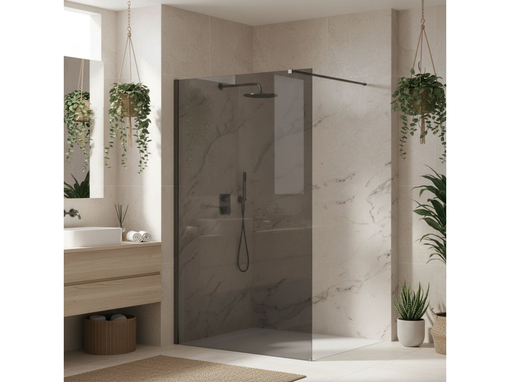 Hľadáte riešenie, ktoré dodá vašej kúpeľni jedinečný, dizajnový charakter? Zvoľte sprchovú stenu walk-in Rea Flexi v modernom prevedení: sivé sklo a profily vo farbe brúsený titán. Ide o kompozíciu, ktorá spája intimitu tónovaného skla so surovou eleganciou metalického, matného povrchu. Konštrukcia zo spoľahlivého 8 mm kaleného skla zaručuje stabilitu a bezpečnosť.Kalené sklo 8 mm (sivé) – odolná tabuľa v grafitovom odtieni, ktorá dodá interiéru moderný výraz a zabezpečí pocit súkromia.Hliníkový profil brúsený titán – výnimočná matná povrchová úprava v titánovom odtieni, moderná a ušľachtilá alternatíva ku klasickému chrómu.Povrchová úprava Easy Clean – technológia uľahčujúca údržbu tým, že odpudzuje vodu a obmedzuje usádzanie vodného kameňa.Vzpera 120 cm s možnosťou skrátenia – stabilizačné rameno v titánovej farbe, ktoré možno jednoducho zrezať a prispôsobiť šírke sprchovej zóny.Univerzálna montáž – flexibilná inštalácia: stenu je možné namontovať ako pravú aj ľavú, na vaničku alebo priamo na podlahu.Konštrukcia Walk-In – priestranný vstup bez bariér, mimoriadne pohodlný a zvýrazňujúci minimalistický štýl kúpeľne.Sprchová stena Rea Flexi je ideálnou voľbou pre milovníkov industriálneho šiku a netradičných riešení. Sivý odtieň skla v kombinácii s brúseným titánom vytvára kompaktný a veľmi efektný celok. Kvalitné spracovanie a ochranná vrstva z nej robia investíciu do komfortu a vycibreného štýlu na dlhé roky.Dodatočné parametre