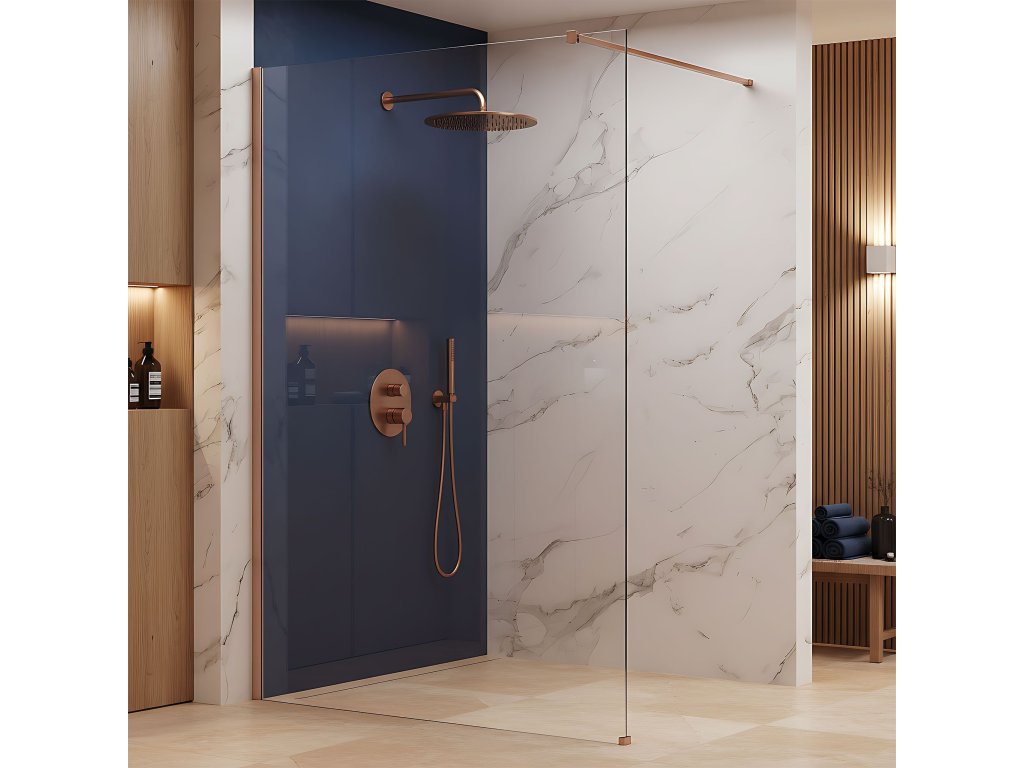 Snívate o kúpeľni plnej tepla a luxusu? Objavte sprchovú stenu walk-in Rea Flexi v zaujímavej konfigurácii: transparentné sklo a profil vo farbe kartáčovanej medi. Toto spojenie modernej formy a elegantného vyhotovenia dodáva interiéru jedinečný charakter. Konštrukcia z bezpečného 8 mm tvrdeného skla zaručuje dlhú životnosť a stabilitu.8 mm tvrdené sklo – hrubé, bezpečné transparentné sklo, ktoré vizuálne nenarúša priestor.Hliníkový profil v kartáčovanej medi – luxusná kartáčovaná povrchová úprava profilu a stabilizačného ramena, dokonale ladiaca s čírym sklom.Povrchová úprava Easy Clean – neviditeľná hydrofóbna vrstva uľahčujúca stekanie vody a chrániaca pred usadeninami mydla a vodného kameňa.Stabilizačné rameno 120 cm s možnosťou skrátenia – horné rameno v medenom odtieni je možné prispôsobiť individuálnym požiadavkám.Univerzálna montáž – stenu možno namontovať na pravú alebo ľavú stranu, na vaničku alebo priamo na podlahu.Konštrukcia Walk-In – moderný otvorený vstup bez pohyblivých prvkov, ktorý zaručuje pohodlie a spoľahlivosť.Sprchová stena Rea Flexi je ideálnou voľbou pre tých, ktorí hľadajú vycibrený štýl. Vďaka povrchovej úprave Easy Clean a kvalitným materiálom spája produkt vysokú estetiku s každodennou funkčnosťou.Dodatočné parametre