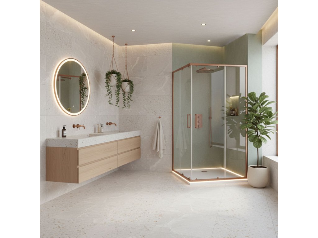 Objavte novú definíciu luxusu vo svojej kúpeľni vďaka sprchovému kútu Rea City v jedinečnom vyhotovení kartáčovaná meď. Toto výnimočné riešenie spája surový mestský štýl s teplým kovovým odtieňom a vytvára dominantný prvok modernej kúpeľne. Pevná konštrukcia a dôraz na detaily zaručujú dlhodobé a bezproblémové používanie.6 mm tvrdené sklo zabezpečuje maximálnu bezpečnosť a vysokú odolnosť proti poškodeniuPovrchová úprava Easy Clean uľahčuje čistenie a zabraňuje usadzovaniu vodného kameňaProfily z kartáčovaného hliníka v medenom odtieni dodávajú interiéru elegantný vzhľadPosuvný systém na kolieskach umožňuje tiché a plynulé otváranie dveríUniverzálna montáž na vaničku alebo priamo na podlahu s lineárnym odtokomMagnetické tesnenia zabezpečujú dokonalú tesnosť a ochranu pred striekajúcou vodou Sprchový kút Rea City je ideálnou voľbou pre tých, ktorí hľadajú originálny dizajn. Kartáčovaná meď sa výborne kombinuje s betónom, kameňom či drevom a vytvára nadčasový priestor.