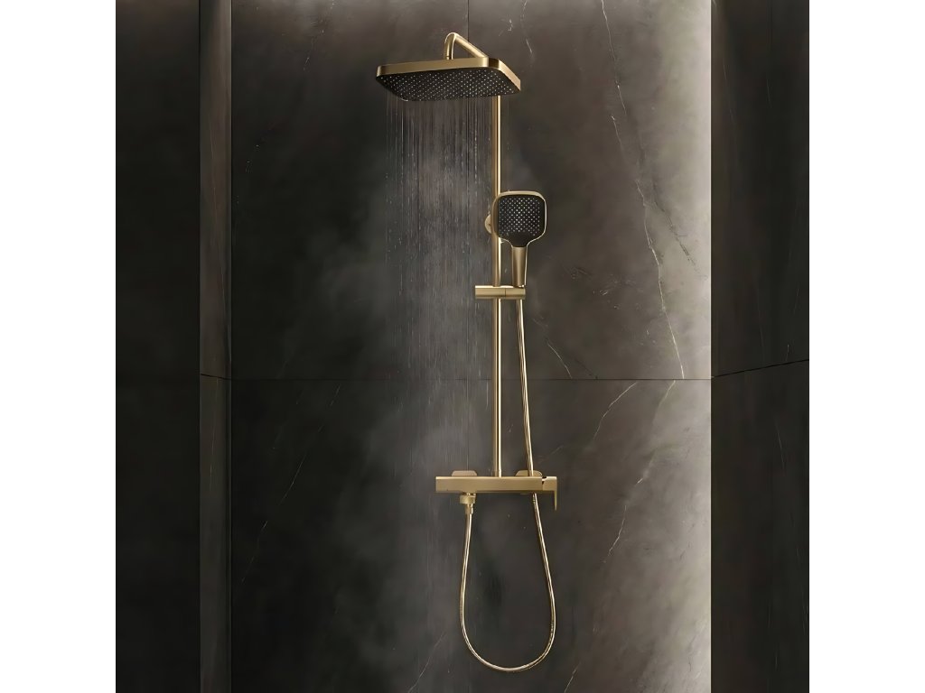 Dodajte svojej kúpeľni luxusný charakter so sprchovým nástenným setom Rea Arlo Brushed Gold. Tento model vo vyhotovení Kartáčované zlato spája geometrický dizajn s teplou, ušľachtilou farebnosťou. Masívne telo batérie z mosadze a odolná PVD povrchová úprava zaručujú spoľahlivosť a bezchybný vzhľad na dlhé roky.Farba Kartáčované zlato – elegantný odtieň zlata s kartáčovanou štruktúrou. Vnáša do interiéru luxusnú atmosféru a zároveň sa udržiava jednoduchšie než lesklé povrchy (odtlačky prstov sú menej viditeľné).PVD povrch – pokročilá technológia nanášania farby zabezpečuje výnimočnú odolnosť voči poškriabaniu, zmatneniu a korózii.Telo z mosadze – srdce setu je z kvalitnej zliatiny, čo zabezpečuje stabilitu konštrukcie a odolnosť voči vysokému tlaku vody.Hlavová sprcha a ručná sprcha z ABS – štvorcové sprchové prvky sú z ľahkého a odolného ABS, ktoré sa ľahko čistí od usadenín.Geometrický dizajn – výrazné štvorcové tvary hlavovej aj ručnej sprchy sa hodia do moderných, loftových aj eklektických kúpeľní.Nastaviteľná tyč – umožňuje plynulé nastavenie výšky hlavovej sprchy a zaručuje komfort pre každého člena domácnosti.Set Rea Arlo Brushed Gold je ideálnou voľbou pre vašu kúpeľňu. Kombinácia kartáčovaného zlata a surovej geometrie robí z tejto armatúry hlavný dekoratívny prvok sprchovej zóny.