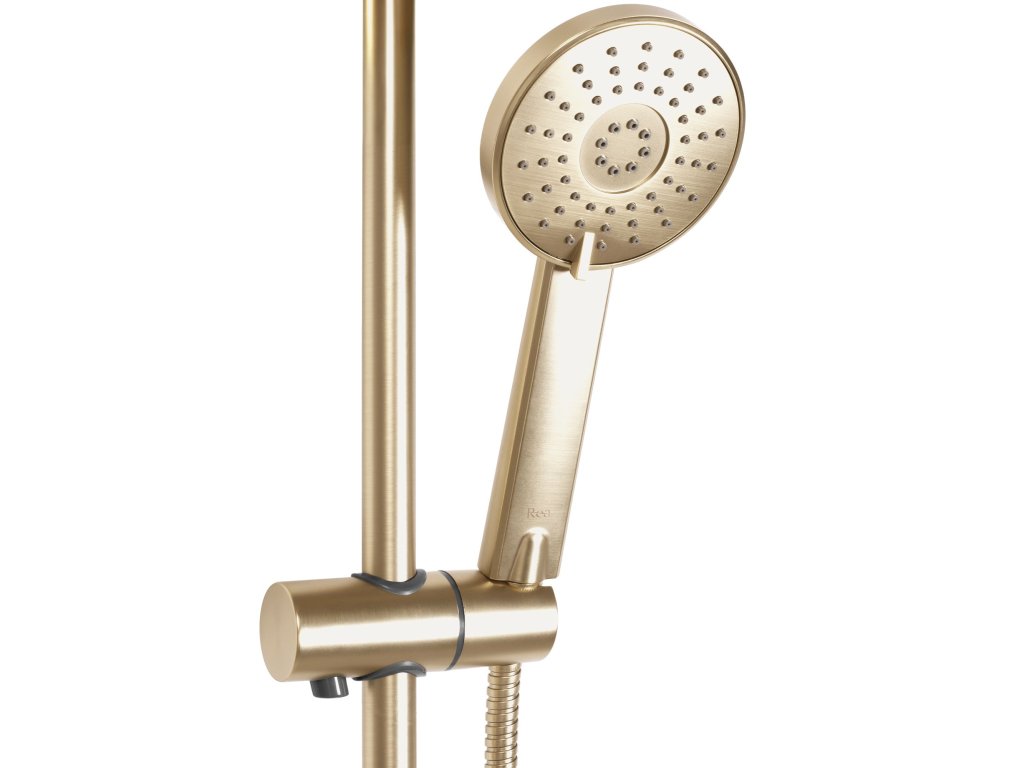 Sprchová sada s termostatom bola navrhnutá za účelom dosiahnutia Vášho maximálneho pohodlia a jedinečného dizajnu. Vysoká kvalita použitých materiálov zaručujú odolnosť a vysokú spoľahlivosť po mnoho rokov. Moderná, dizajnérska sprchová sada neobyčajných tvarov série Rea Tom obsahuje termostatickú batériu, vyrobenú z mosadze vysokej kvality v honosnom zlatoskvúcom prevedení. Lakovanie batérie bolo vykonané v troch vrstvách, vďaka čomu je batéria odolná voči korózii a strate farby. Ďalšie čiastkové prvky sú vyrobené z prvotriednych materiálov odolných voči poškodeniu aj v čiernom matnom prevedení.Dodatočné parametre
