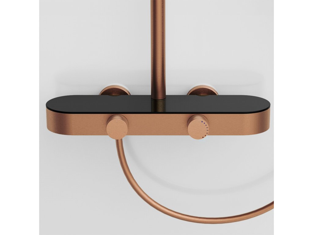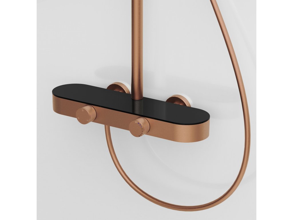 Sprchová súprava REA Creo Brushed Copper je moderné nástenné riešenie, ktoré spája elegantnú brúsenú meď s pohodlím každodenného používania. Model bol navrhnutý s dôrazom na funkčnosť a estetiku, vďaka čomu sa výborne hodí do moderných, loftových aj industriálnych interiérov.Plynulá regulácia otočnými ovládačmi – batéria je vybavená dvoma ergonomickými ovládačmi. Prvý umožňuje presné a pohodlné nastavenie teploty vody, druhý slúži na prepínanie režimov prúdu medzi hlavovou sprchou, ručnou sprchou a výtokom.Ručná sprcha s funkciou Bidetta – praktická ručná sprcha má tlačidlo na zadnej strane tela a dodatočný vývod hore. Po aktivácii môže plniť funkciu bidetky, čo uľahčuje rýchle opláchnutie kabíny, umytie vaničky alebo naplnenie vysokého vedra.Diskrétny kaskádový výtok – integrovaný vaňový výtok poskytuje široký kaskádový prúd, ktorý je praktický pri umývaní rúk alebo napĺňaní nádoby bez použitia ručnej sprchy.Technológia PVD – povrch v odtieni brúsenej medi je vytvorený technológiou PVD. Vrstva je rovnomerná, odolná a odolnejšia voči oderu, vlhkosti a každodennému používaniu, takže armatúra si dlhšie zachováva reprezentatívny vzhľad.Pevná konštrukcia – telo batérie je vyrobené z odolnej mosadze, čo zaručuje stabilitu a dlhú životnosť. Hlavová sprcha aj ručná sprcha z ABS sú ľahké, praktické a ľahko sa udržiavajú.Komfort prispôsobenia – výškovo nastaviteľná tyč umožňuje prispôsobiť polohu hlavovej sprchy výške používateľov a usporiadaniu sprchovej zóny.REA Creo Brushed Copper je premyslená sprchová súprava pre tých, ktorí očakávajú moderný vzhľad a pohodlné ovládanie. Funkčné riešenia a odolné materiály robia každodenné sprchovanie komfortnejším a intuitívnejším.