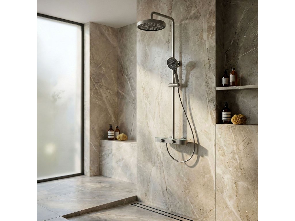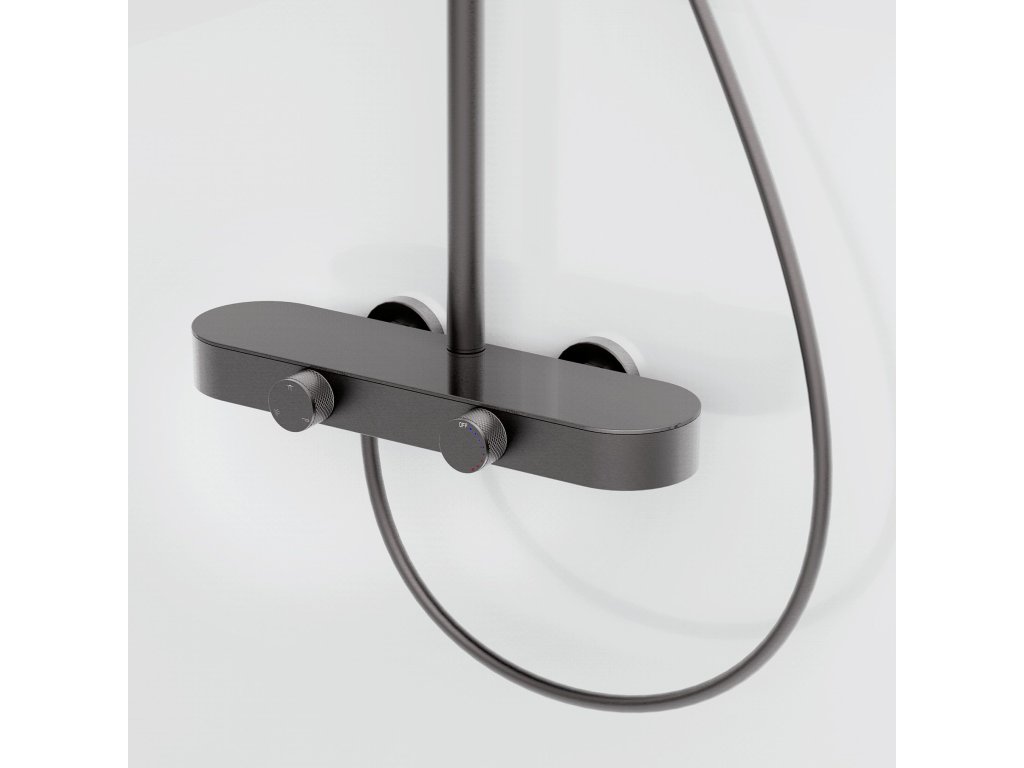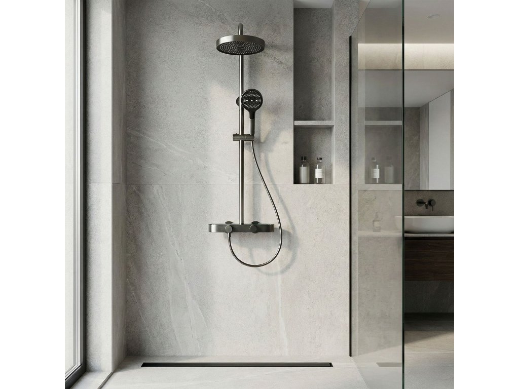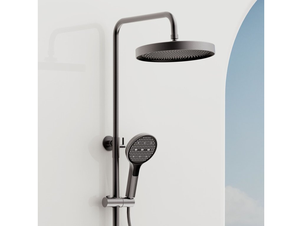 Sprchový set REA Creo Tytan je moderné nástenné riešenie, ktoré spája elegantný brúsený odtieň s komfortom každodenného používania. Model bol navrhnutý s dôrazom na funkčnosť a estetiku, vďaka čomu sa hodí do moderných, loftových aj industriálnych kúpeľní. Plynulá regulácia otočnými ovládačmi – batéria je vybavená dvoma ergonomickými ovládačmi. Prvý umožňuje presné a pohodlné nastavenie teploty vody a druhý slúži na prepínanie režimov prúdu medzi hlavovou sprchou, ručnou sprchou a výtokom. Ručná sprcha s funkciou Bidetty – praktická ručná sprcha má tlačidlo na zadnej strane a dodatočný výstup na vrchu. Po aktivácii môže slúžiť ako bidetová sprška, čo uľahčuje rýchle opláchnutie sprchového kúta, umytie vaničky alebo naplnenie vysokého vedra. Diskrétny kaskádový výtok – integrovaný výtok zabezpečuje široký kaskádový prúd, ktorý sa hodí pri umývaní rúk alebo napúšťaní nádoby bez potreby používať ručnú sprchu. Technológia PVD – povrchová úprava bola nanesená metódou PVD, čo zaručuje výnimočnú tvrdosť a odolnosť proti poškriabaniu či zmatneniu aj pri intenzívnom používaní. Pevná konštrukcia – telo batérie je vyrobené z odolnej mosadze, čo sa premieta do stability a dlhej životnosti. Hlavová sprcha a ručná sprcha z ABS sú ľahké, praktické a ľahko sa udržiavajú v čistote. Sklenené vyhotovenie batérie – horná plocha batérie je chránená sklenenou doskou, ktorá je dekoratívnym aj praktickým prvkom, vďaka čomu môže batéria slúžiť ako dodatočná polička na kozmetiku počas sprchovania. Komfortné prispôsobenie – tyč s nastaviteľnou výškou umožňuje prispôsobiť polohu hlavovej sprchy výške používateľov aj rozloženiu sprchovej zóny. REA Creo Tytan je premyslený sprchový set pre ľudí, ktorí očakávajú moderný vzhľad a pohodlné ovládanie. Funkčné riešenia a odolné materiály robia každodenné sprchovanie komfortnejším a intuitívnejším.