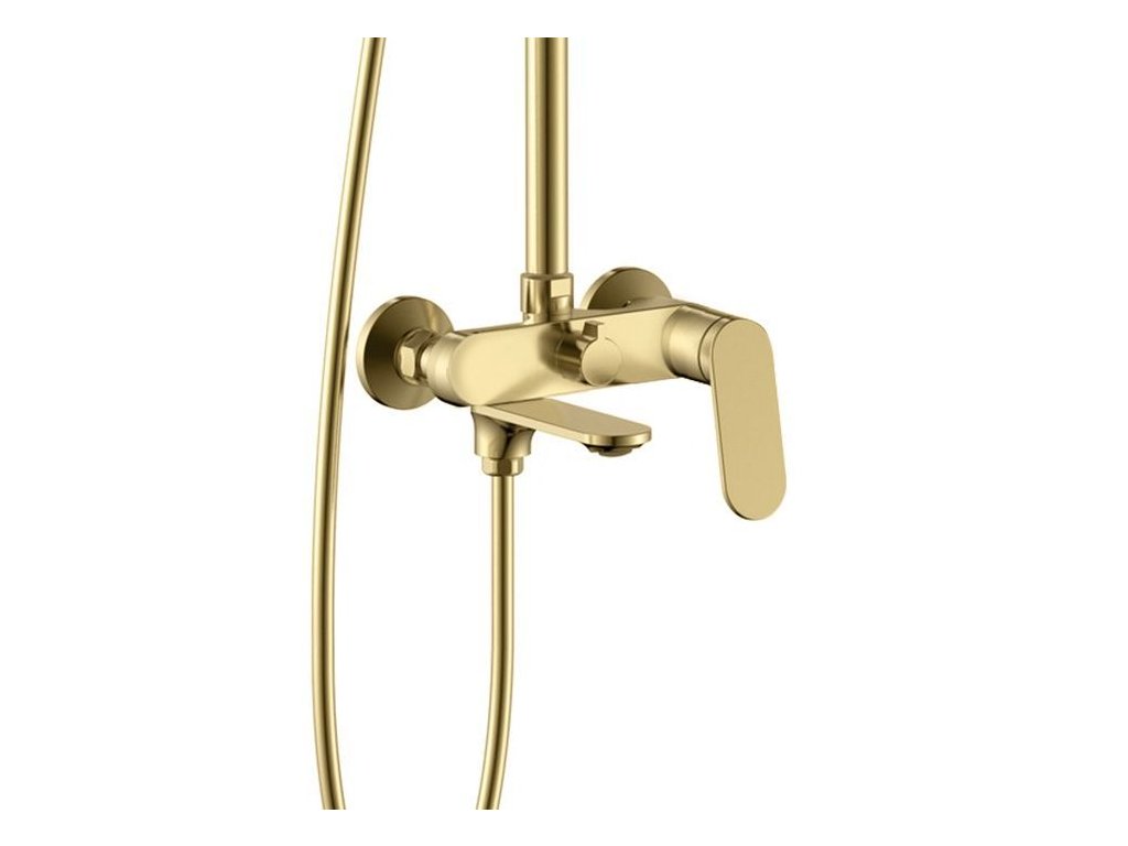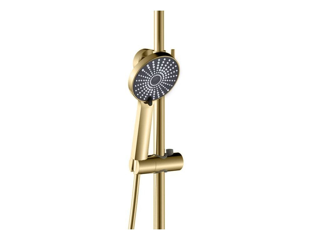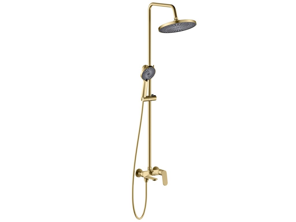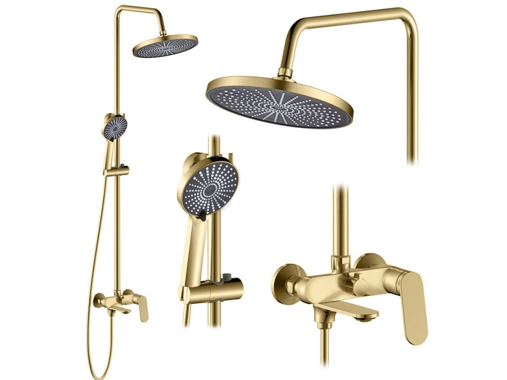 Sprchová sada navrhnutá pre najvyššie na pohodlie a funkčnosť. Vďaka špeciálnej etape výroby zaručuje maximálnu bezpečnosť a pohodlie pri každodennom používaní. Vyrobené z kvalitnej mosadze, odolného materiálu voči korózii. Jedinečný dizajn a vysoká kvalita použitých materiálov zaručujú odolnosť a spoľahlivosť mnoho rokov. Súčasťou sady je dažďová sprcha a ručná sprcha. Kartáčované zlato.Dodatočné parametre
