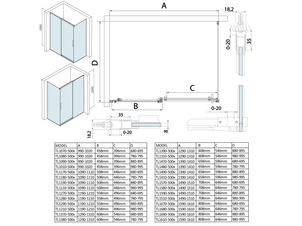 - Dvere sú delené na časť posuvnú a pevnú - umožňujú variabilnú inštaláciu s ľavým alebo pravým otváraním