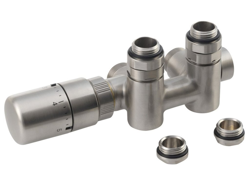 TWIN COMBI pripojovacia sada ventilov termostatická pre stred. pripojenie, brúsený nerez