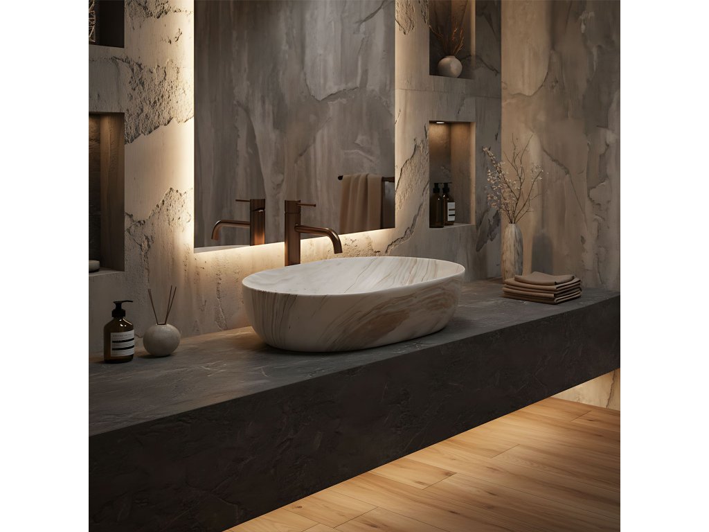 Objavte jedinečné spojenie prírodnej estetiky a moderného dizajnu vďaka umyvadlu na dosku Rea Amelia Saturn. Jeho matné vyhotovenie a vzor imitujúci kameň robia z každého kusu centrálny bod kúpeľňovej aranžácie. Umyvadlo je vyrobené z vysokokvalitnej sanitárnej keramiky, ktorá zaručuje odolnosť proti poškriabaniu a každodennému používaniu, pričom si zachováva bezchybný vzhľad po dlhé roky.Vzor imitujúci kameň dodáva interiéru luxusný a organický charakter a dokonale ladí s rôznymi štýlmi zariadenia.Matný povrch je mimoriadne elegantný a výrazne uľahčuje čistenie, keďže minimalizuje viditeľnosť škvŕn.Šírka 48 cm poskytuje optimálny priestor na každodennú hygienu bez toho, aby zaberala príliš veľa miesta na doske. Umyvadlo na dosku Rea Amelia Saturn je ideálnou voľbou pre tých, ktorí hľadajú odolné a pôsobivé riešenia. Pevná konštrukcia a dôraz na detaily robia každodenné používanie kúpeľne skutočným potešením. Výberom tohto modelu investujete do nadčasového štýlu a spoľahlivej funkčnosti, ktorá premení váš interiér na dlhé roky.Dodatočné parametre