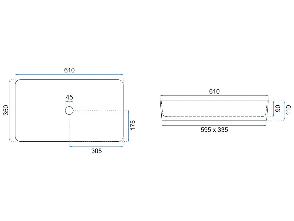 | Dĺžka umývadla | 610 mm |