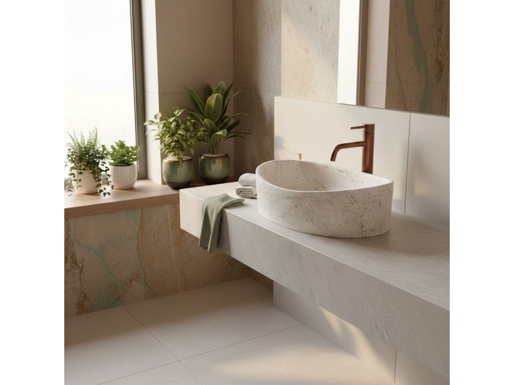 Objavte novú definíciu luxusu a prírodnej krásy výberom umyvadla na dosku Rea Dream vyrobeného z kvalitného umelého kameňa. Tento jedinečný model s travertínovou štruktúrou prináša do kúpeľne surovú eleganciu.Umelý kameň (kompozit) – vysoká odolnosť proti poškodeniu a chemikáliám.Travertínový vzhľad – luxusný a prírodný charakter.Montáž na dosku – efektný dizajn a viac priestoru.Hladký vnútorný povrch – jednoduchá údržba.Oválny tvar – minimalizuje striekanie vody. Umyvadlo Rea Dream spája nadčasový dizajn s vysokou funkčnosťou.Dodatočné parametre