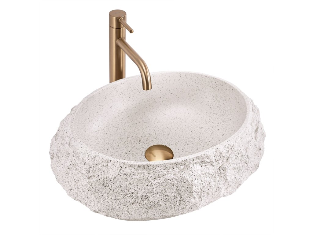 Nábytkové umývadlo Mika je riešením pre tých, ktorí chcú vo svojej kúpeľni spojiť eleganciu s modernosťou. Jeho povrch očarí hlbokou kamennou štruktúrou, ktorá dodáva interiéru jedinečný charakter. Je vyrobené z inovatívneho materiálu Artificial Stone (umelý kompozitný kameň), ktorý spája estetiku prírodného kameňa s odolnosťou a funkčnosťou moderných riešení. Vyniká odolnosťou voči mechanickému poškodeniu, vysokým teplotám a vlhkosti. Hladký vnútorný povrch misy zaručuje jednoduchú údržbu, zatiaľ čo surová kamenná textúra zvonka dodáva interiéru charakter a jedinečný pôvab. Je to voľba pre tých, ktorí hľadajú elegantný, dizajnový prvok kúpeľne, ktorý je rovnako praktický ako efektný.