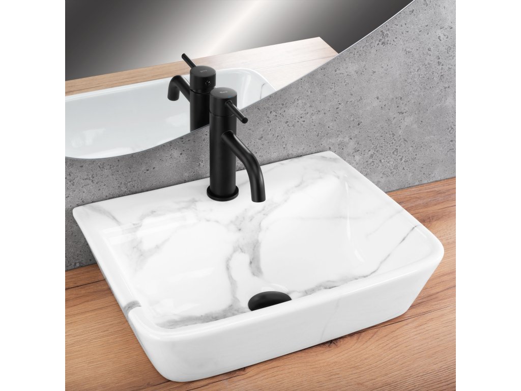Predstavujeme Vám moderné nové umývadlo na dosku série Rea Altea. Umývadlo netradičného tvaru je vyrobené z materiálov najvyššej kvality a jeho vlastnosti splnia všetky vaše požiadavky. Tento model ocení predovšetkým zákazník, hľadajúci funkčné, ale aj estetické riešenie. Umývadlo je určené na montáž na dosku, ale je možné ho kombinovať aj so skrinkou. Umývadlo v prevedení, ktoré napodobňuje svetlý kameň, sa navyše vďaka špeciálnej fáze výroby ľahko čistí, je veľmi odolné a má jedinečný vzor.Dodatočné parametre
