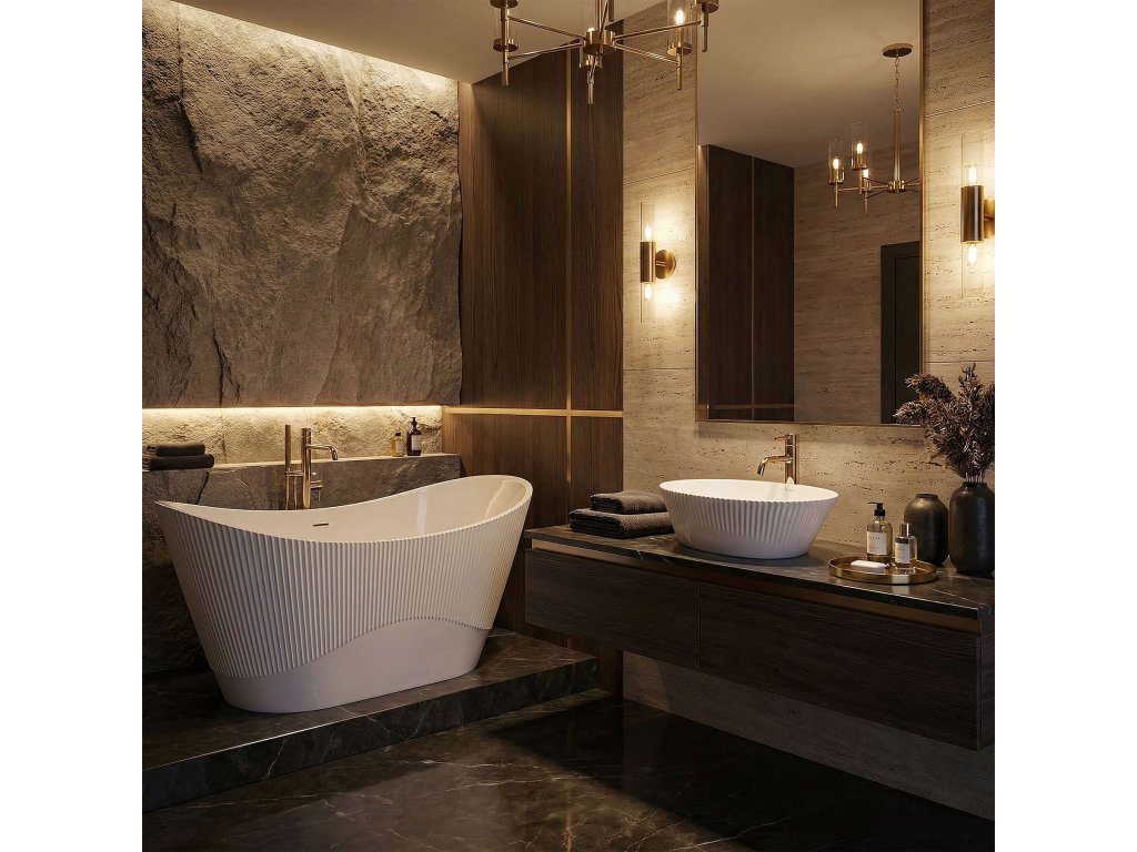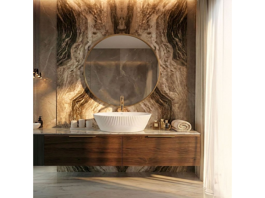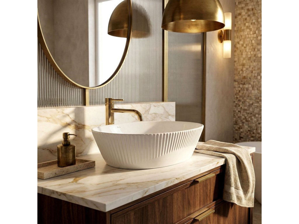 Objavte novú definíciu luxusu vo svojej umývacej zóne vďaka umyvadlu na dosku Rea Astoria. Tento výnimočný model priťahuje pozornosť jedinečným vertikálnym ryhovaním na vonkajších stenách, ktoré dodáva interiéru trojrozmernosť a umelecký charakter. Vyrobené z najkvalitnejšej sanitárnej keramiky, spája bezchybnú estetiku s výnimočnou odolnosťou voči každodennému používaniu.Dekoratívne ryhovanie – dodáva tvaru ľahkosť a robí z umývadla hlavný dekoratívny prvok každej modernej kúpeľne.Vysokokvalitná sanitárna keramika – zaručuje trvácnosť, odolnosť voči poškriabaniu a dlhú životnosť produktu.Vyhotovenie v bielom lesku – uľahčuje udržiavanie dokonalej čistoty a dodáva interiéru lesk a sviežosť.Montáž na dosku – umožňuje efektnú prezentáciu keramiky a poskytuje ďalšie miesto na toaletné potreby na doske.Optimálne rozmery a oválny tvar – ponúkajú maximálne pohodlie pri každodennej hygiene a zároveň minimalizujú rozstrekovanie vody. Umyvadlo na dosku Rea Astoria je ideálnou voľbou pre tých, ktorí hľadajú netradičné a elegantné riešenia. Vďaka dôrazu na každý detail a použitiu pevných materiálov si tento produkt zachová svoj bezchybný vzhľad po mnoho rokov. Výberom tohto modelu investujete do nadčasového dizajnu a komfortu, ktorý zmení podobu vašej kúpeľne.