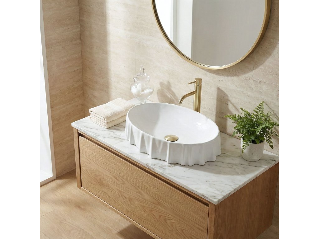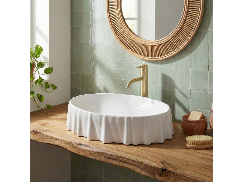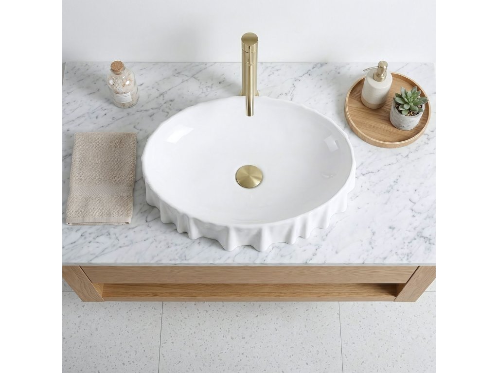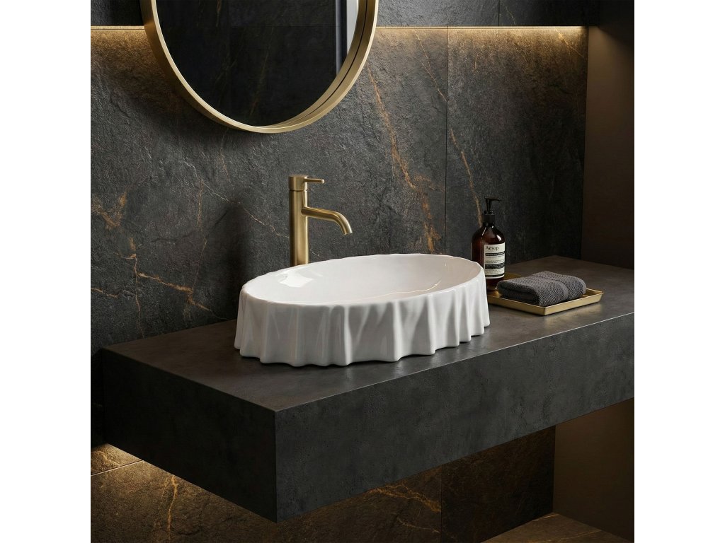 Hľadá sa výnimočný detail, ktorý oživí interiér kúpeľne? Biele umývadlo na dosku REA Atria je nevšedným projektom pripomínajúcim jemne zvlnený materiál, ktorý priťahuje zrak a dodáva priestoru ľahkosť. Použitie sanitárnej keramiky najvyššej triedy predstavuje záruku dokonalého vzhľadu na dlhé roky a mimoriadnej trvanlivosti. Montáž na dosku – umožňuje efektné vystavenie atypického tvaru misy, pričom sa šetrí cenné miesto v skrinke pod pultom. Vysokokvalitná sanitárna keramika – vykazuje nadpriemernú odolnosť voči poškriabaniu a zmene farby, čo uľahčuje rýchle udržiavanie každodennej čistoty. Neštandardný, zvlnený okraj – unikátny detail, vďaka ktorému sa bežný produkt mení na umelecké dielo, čím sa buduje neopakovateľný charakter interiéru. Snehobiely lesk – účinne rozjasňuje priestor, zatiaľ čo ideálne hladký povrch zabraňuje usadzovaniu vodného kameňa a nečistôt. Premyslené rozmery a hĺbka 120 mm – zamedzujú nepríjemnému rozstrekovaniu vody, a tak sa zaisťuje najvyšší komfort počas rannej hygieny. Absencia otvoru na batériu a prepadu – poskytuje plnú slobodu pri výbere ideálnej nástennej alebo vysokej stojankovej batérie, čo zjednodušuje realizáciu vlastnej architektonickej vízie. Pri výbere umývadla na dosku REA Atria sa získava nielen vysoko praktický prvok vybavenia, ale aj javisková ozdoba celej miestnosti. Jeho originálny charakter uľahčuje voľbu ostatnej armatúry a zaručuje ucelený, luxusný konečný výsledok. Bezproblémová montáž a nekompromisná starostlivosť výrobcu o detaily sú istotou investície do spoľahlivosti.Dodatočné parametre
