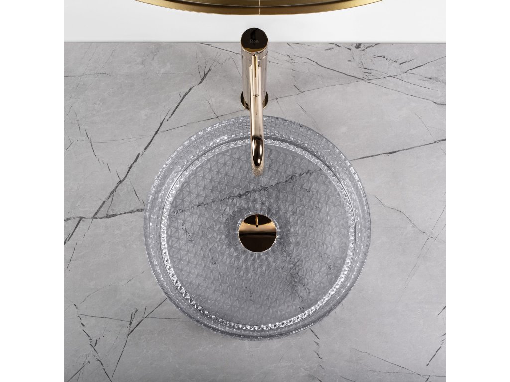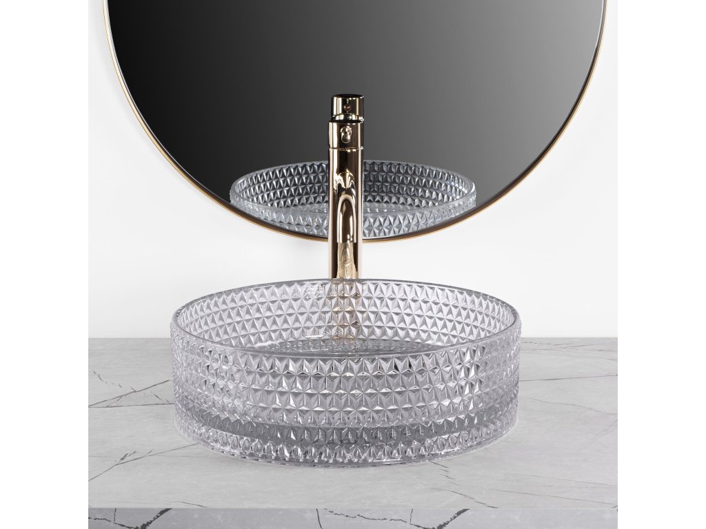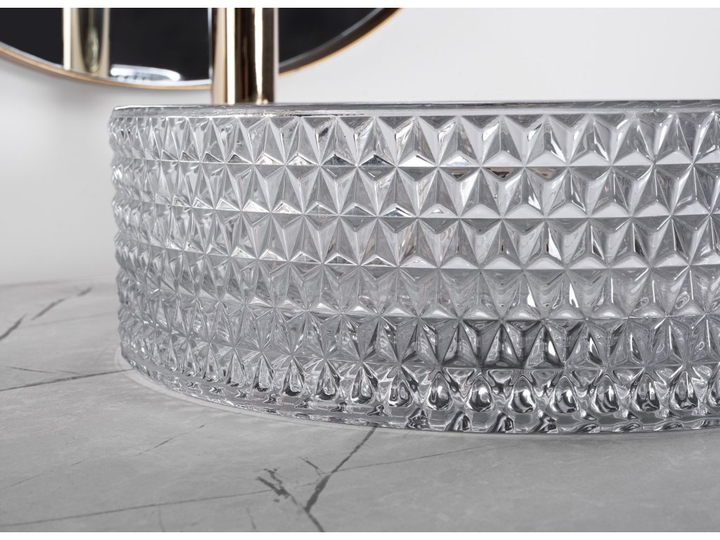 Moderné krištáľové umývadlo zo série Cristal sa bude vo vašej štýlovej kúpeľni skvele vynímať. Je vyrobené z vysoko kvalitného skla a je vhodný na montáž na pracovnú dosku alebo skrinku. Zaujímavý vizuálny efekt podčiarkuje svetlo odrážajúce sa v kryštáloch. Umývadlo s krištáľovým povrchom sa bezpochyby vyznačuje zaujímavým vzorom a dizajnom, čím dozaista zaujme každého hosťa.Dodatočné parametre