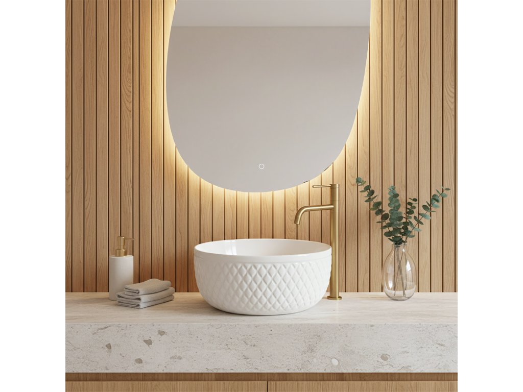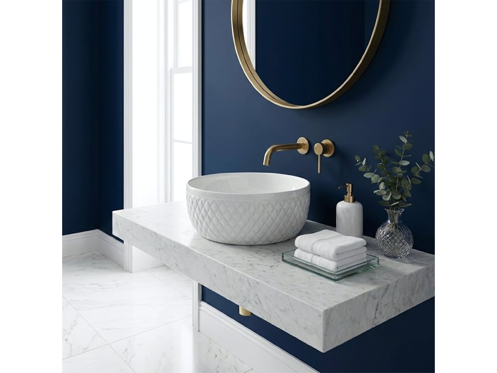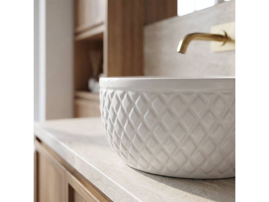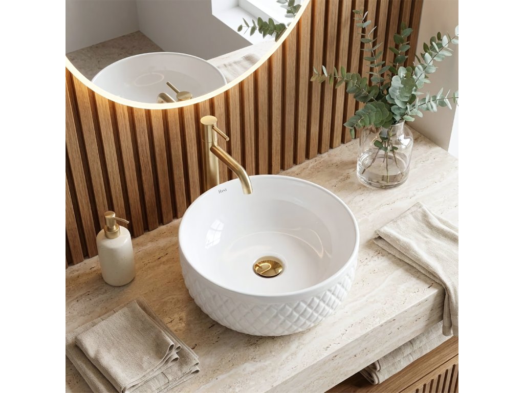 Podčiarknite elegantný charakter svojej kúpeľne s umývadlom na dosku Rea Galaxy. Tento model spája klasickú bielu s dekoratívnou formou, ktorá upúta pozornosť. Vonkajšie steny misy zdobí ryhovaná štruktúra v romboch, vďaka čomu keramika pôsobí ako luxusný doplnok v glamour štýle.Dekoratívna textúra – vonkajší povrch umývadla má výrazné geometrické reliéfy pripomínajúce prešívanie, ktoré vytvárajú efektnú hru svetla a tieňa a oživujú interiér.Optimálna výška – misa je hlbšia než štandardné modely. Tento rozmer znižuje rozstrekovanie vody a je ideálny na kombináciu s vysokými stojankovými alebo podomietkovými batériami.Biela keramika – vyhotovenie z vysokokvalitnej glazovanej sanitárnej keramiky zaručuje dlhú životnosť, bezchybný lesk a odolnosť proti poškriabaniu.Hladké vnútro – na rozdiel od dekoratívneho plášťa je vnútro misy dokonale hladké, čo uľahčuje každodenné čistenie a zabezpečuje hygienu.Montáž na dosku – umývadlo je určené na umiestnenie na dosku alebo skrinku a stáva sa výrazným centrálnym prvkom umývacej zóny.Umývadlo Rea Galaxy je voľbou pre tých, ktorí chcú v kúpeľni prelomiť minimalizmus. Jeho šperkový dizajn sa výborne kombinuje s elegantnými doplnkami a spája praktické výhody hlbokej misy s jedinečným štýlom.Dodatočné parametre