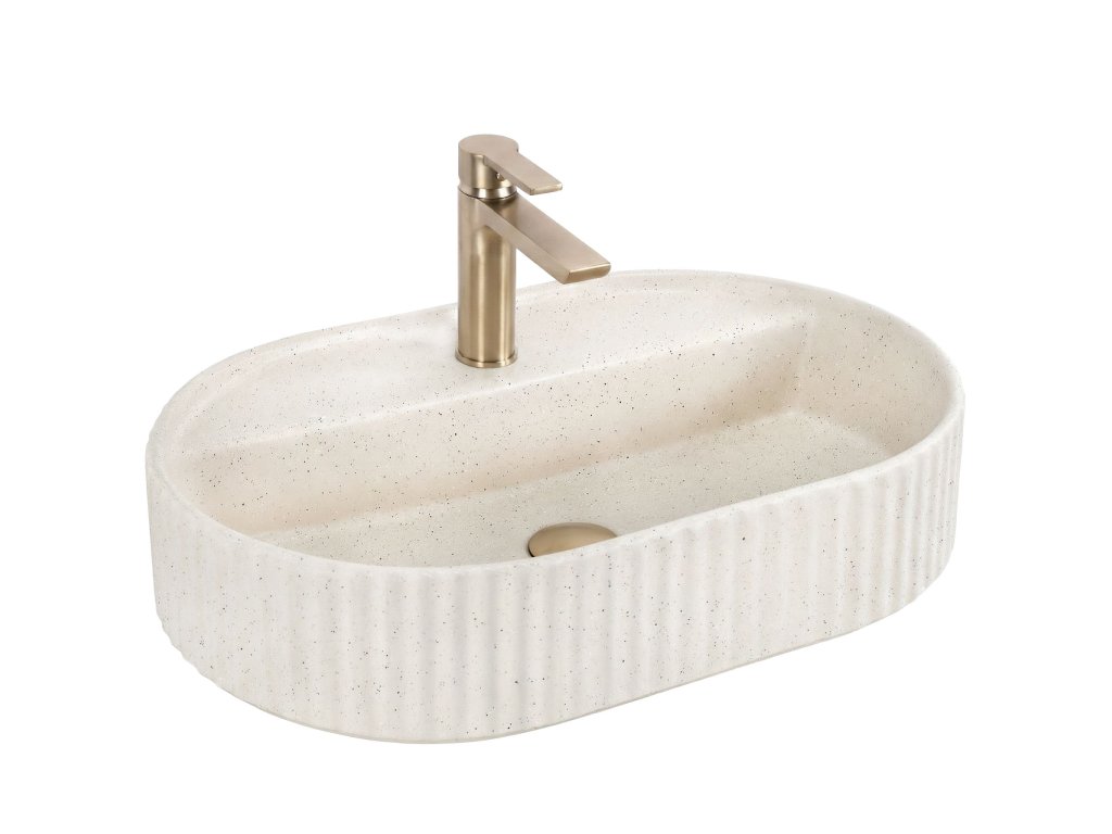 Umývadlo na dosku Rea Marcela 60 vo variante Vanilla je ideálnou voľbou do kúpeľní, kde rozhodujú prepracované detaily a pokojná, elegantná farebnosť. Teplý odtieň lomennej bielej prináša ľahkosť a „mäkký“ dojem čistoty a zároveň sa skvele kombinuje s kamennými doskami, drevom a čiernou či grafitovou batériou. Vďaka tomu sa hodí do moderných prémiových interiérov aj do štýlu soft loft či modern classic.Tvar zaujme charakteristickým zvislým vrúbkovaním na vonkajšej stene, ktoré podčiarkuje dizajnový charakter a robí z umývadla dekoratívny prvok. Ďalšou výhodou je jemná bodkovaná textúra viditeľná na povrchu – dodáva hĺbku, prirodzený „kamenný“ efekt a celkovo ušľachtilý vzhľad. Oválna, pohodlne tvarovaná misa zabezpečuje komfort pri každodennom používaní a matná povrchová úprava Vanilla pomáha udržať jednotný, moderný vzhľad umývadlovej zóny.Dodatočné parametre