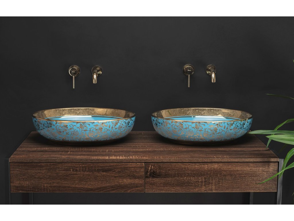 Umývadlo na dosku REA MARGOT - Zlato-azúrové