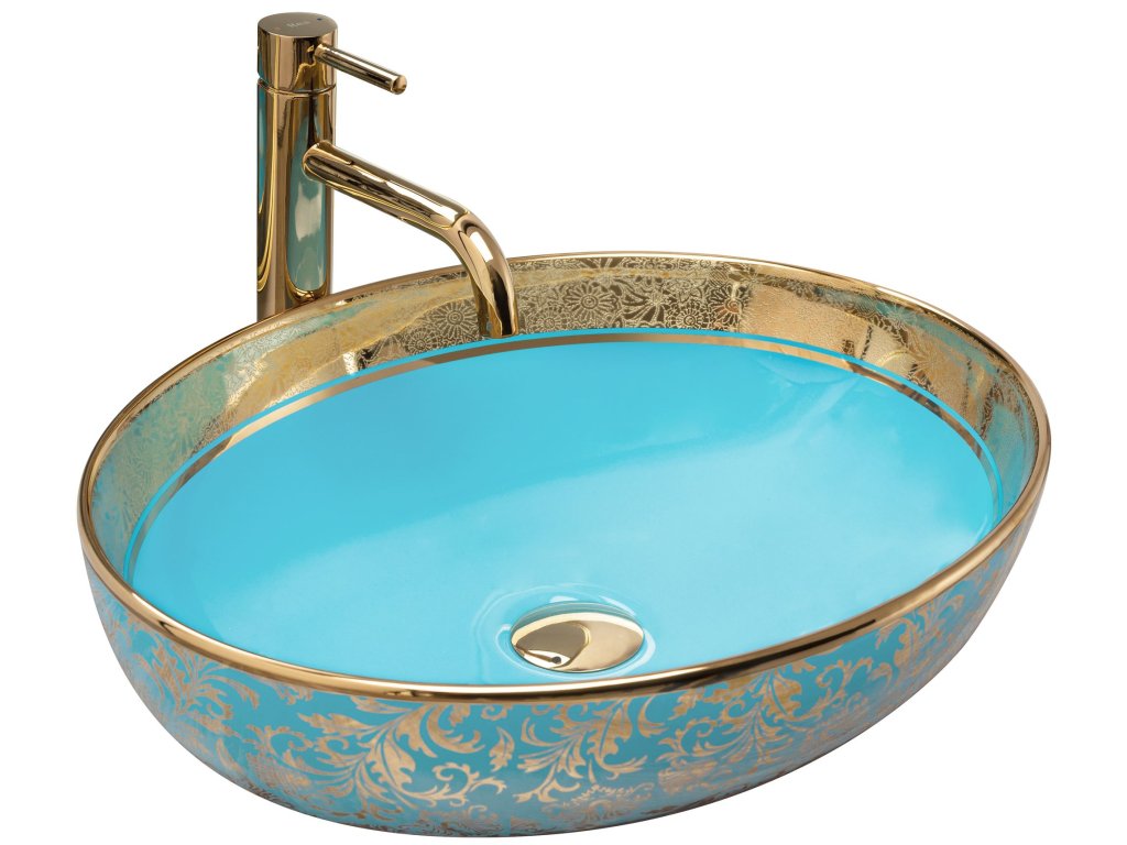 Predstavujeme Vám moderné nové umývadlo na dosku série Rea Margot. Umývadlo netradičného tvaru je vyrobené z vysoko kvalitných materiálov. Vďaka svojim vlastnostiam splní požiadavky všetkých ľudí, ktorí požadujú dokonalé vlastnosti a parametre podľa svojich predstáv. Ide o perfektný model pre ľudí, ktorí hľadajú predovšetkým funkčné, ale hlavne jednoduché riešenie. Umývadlo je určené na montážnu dosku, ale je možné ho kombinovať aj so skrinkou. Umývadlo je vyrobené v azúrovom lesklom prevedení so zlatými kytičkovaným efektom a vďaka špeciálnej fáze výroby sa ľahko čistí a je veľmi odolné. Zvolená technika na povrchovú úpravu tohto umývadla robí každé umývadlo originálne.Dodatočné parametre