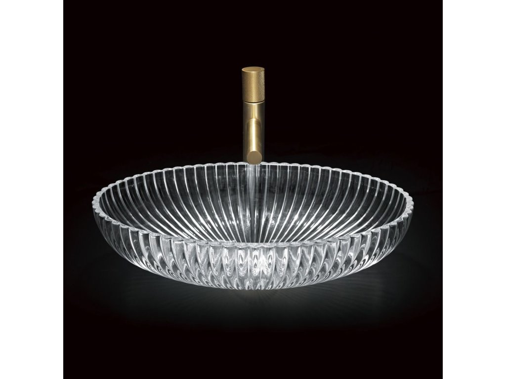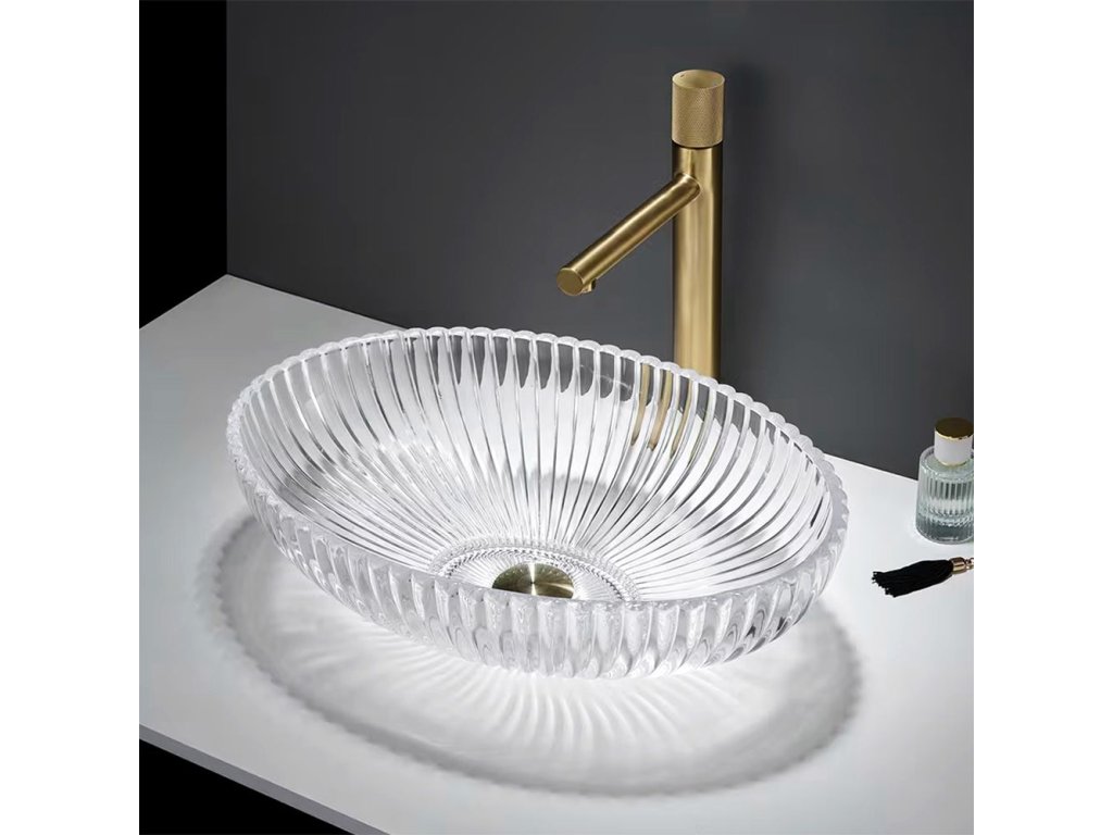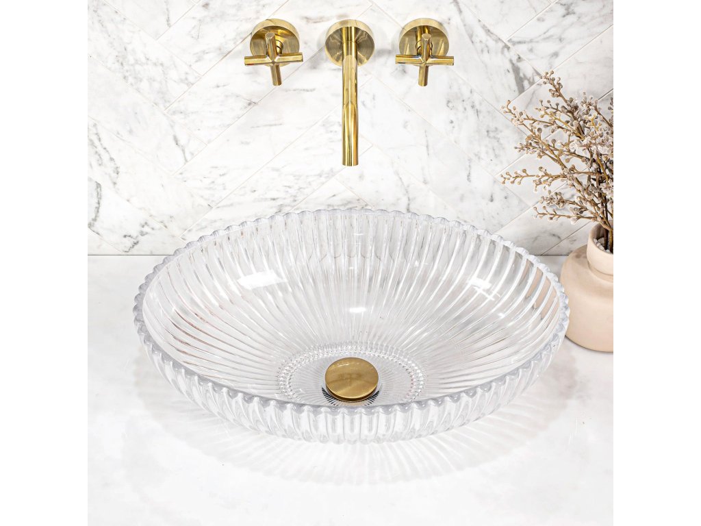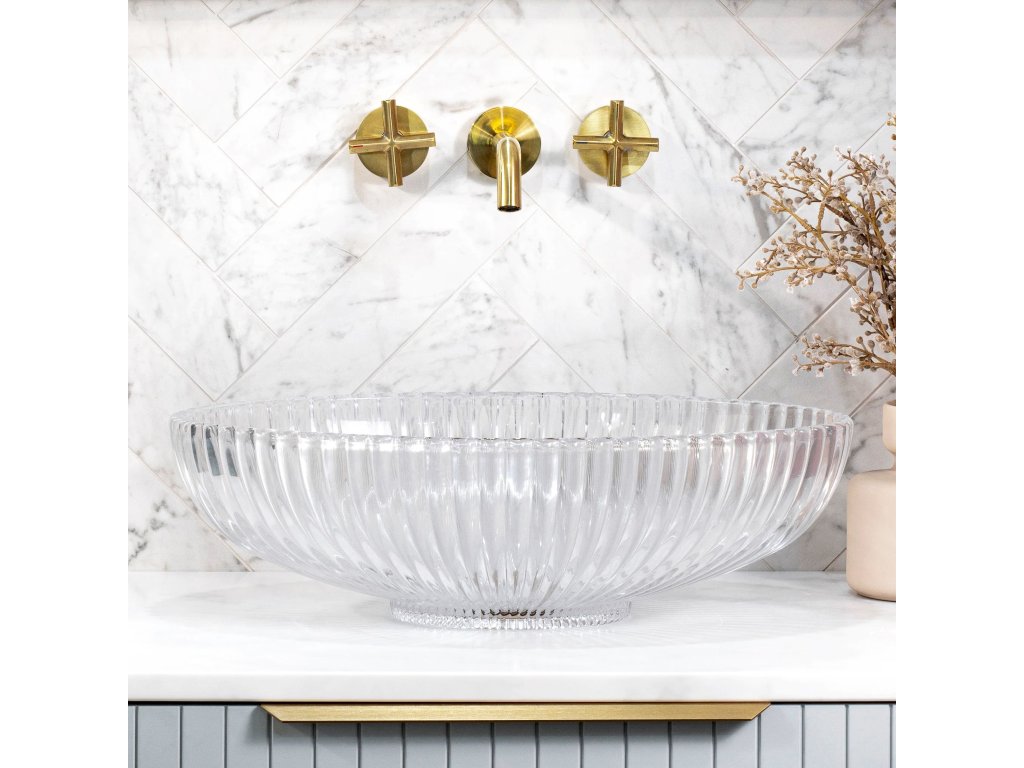 Moderné krištáľové umývadlo zo série Cristal sa bude vo vašej štýlovej kúpeľni skvele vynímať. Je vyrobené z vysoko kvalitného skla a je vhodný na montáž na pracovnú dosku alebo skrinku. Zaujímavý vizuálny efekt podčiarkuje svetlo odrážajúce sa v kryštáloch. Umývadlo s krištáľovým povrchom sa bezpochyby vyznačuje zaujímavým vzorom a dizajnom, čím dozaista zaujme každého hosťa.Dodatočné parametre