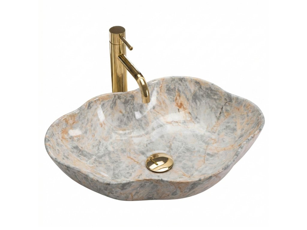Dodajte kúpeľni výrazný akcent výberom umyvadla na dosku Rea Pearl Ruststone. Tento model spája úžitkové výhody sanitárnej keramiky so surovou estetikou kameňa. Vyniká asymetrickým tvarom a jedinečným povrchom v mnohorozmerných odtieňoch sivej a hrdzavo hnedej.Asymetrická forma – nepravidelná, zvlnená línia okrajov dodáva mise moderný a unikátny vzhľad, odlišný od štandardných geometrických tvarov.Povrch Ruststone – lesklá plocha je zdobená nepravidelným vzorom imitujúcim štruktúru kameňa.Sanitárna keramika – vyhotovenie z glazovanej keramiky zabezpečuje ideálnu hladkosť, odolnosť proti poškriabaniu a jednoduchú hygienickú údržbu.Montáž na dosku – konštrukcia prispôsobená inštalácii na dosku alebo skrinku umožňuje naplno vyniknúť dekoratívnym kvalitám tvaru.Univerzálnosť v interiéri – surová farebnosť výborne kontrastuje s armatúrou v zlatej alebo medenej farbe a hodí sa do loftových aj moderných interiérov.Umyvadlo Rea Pearl Ruststone je voľbou pre tých, ktorí oceňujú výrazný dizajn. Spojenie netypickej formy s каменным dekorom robí z tohto modelu funkčnú ozdobu, ktorá účinne naruší monotónnosť kúpeľňového interiéru.