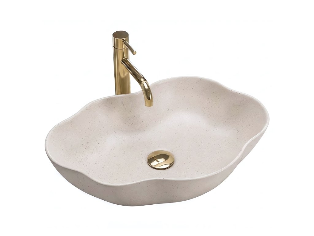 Umyvadlo na dosku Rea Pearl Warm je model s charakteristickým asymetrickým tvarom. Misa vyniká nepravidelnou líniou okrajov a povrchom imitujúcim štruktúru kameňa, pričom si zachováva všetky úžitkové výhody sanitárnej keramiky.Asymetrická bryla – nepravidelný, vlnitý tvar misy je výrazným vizuálnym akcentom a odlišuje tento model od štandardných geometrických umývadiel.Povrch Pearl Warm – svetlá béžová farebnosť s jemnými bodkami dodáva povrchu vzhľad prírodného pieskovca.Sanitárna keramika – umývadlo je vyrobené zo sanitárnej keramiky, čo zaručuje hladký povrch, odolnosť a jednoduché čistenie.Montáž na dosku – konštrukcia prispôsobená inštalácii na kúpeľňový pult alebo skrinku, vďaka čomu vynikne celá forma umývadla.Umyvadlo Rea Pearl Warm spája dekoratívnu formu s funkčnosťou. Použitie sanitárnej keramiky zaručuje trvácnosť a hygienu a netypický tvar aj farebnosť robia z produktu zaujímavú alternatívu ku klasickej bielej sanite.