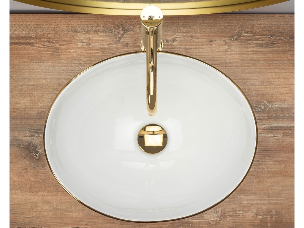Umývadlo na dosku REA SOFIA - biele + zlatý okraj