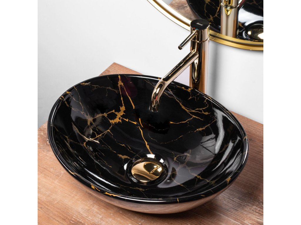 Predstavujeme Vám moderné nové umývadlo na dosku série Rea Sofia. Umývadlo oválneho tvaru je vyrobené z vysoko kvalitných materiálov. Vďaka svojim vlastnostiam splní požiadavky všetkých ľudí, ktorí požadujú dokonalé vlastnosti a parametre podľa svojich predstáv. Ide o perfektný model pre zákazníka, hľadajúceho predovšetkým funkčné, ale hlavne jednoduché riešenie. Umývadlo je určené na montáž na dosku, ale je možné ho kombinovať aj so skrinkou. Umývadlo je vyrobené v čiernom prevedení s mramorovým efektom a vďaka špeciálnej fáze výroby sa ľahko čistí a je veľmi odolné. Vďaka zvolenej technike povrchovej úpravy je každé umývadlo originálne, má svoj jedinečný vzor.
