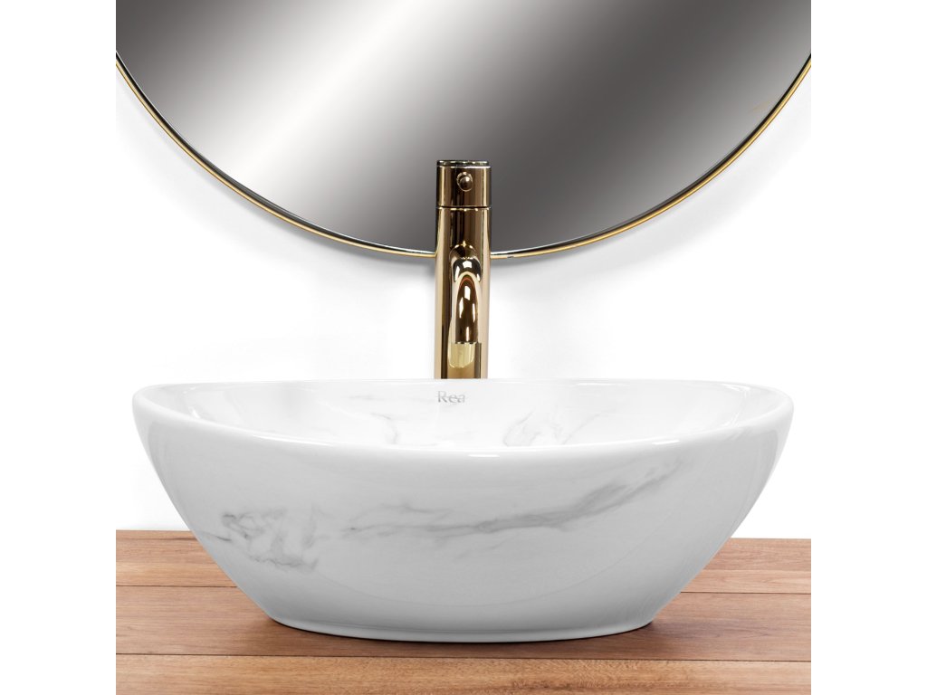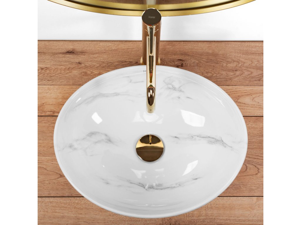Predstavujeme Vám nové moderné umývadlo na dosku série Rea Sami. Umývadlo kruhového tvaru je vyrobené z materiálov najvyššej kvality a jeho vlastnosti splnia všetky vaše požiadavky. Tento model ocení predovšetkým zákazník, hľadajúci nielen funkčné, ale aj estetické riešenie. Umývadlo je určené na montáž na dosku, ale je možné ho kombinovať aj so skrinkou. Umývadlo v bielom lesklom prevedení s jedinečným mramorovým vzorom sa navyše vďaka špeciálnej fáze výroby ľahko čistí a je veľmi odolné.Dodatočné parametre