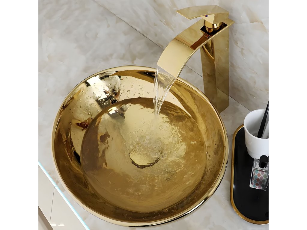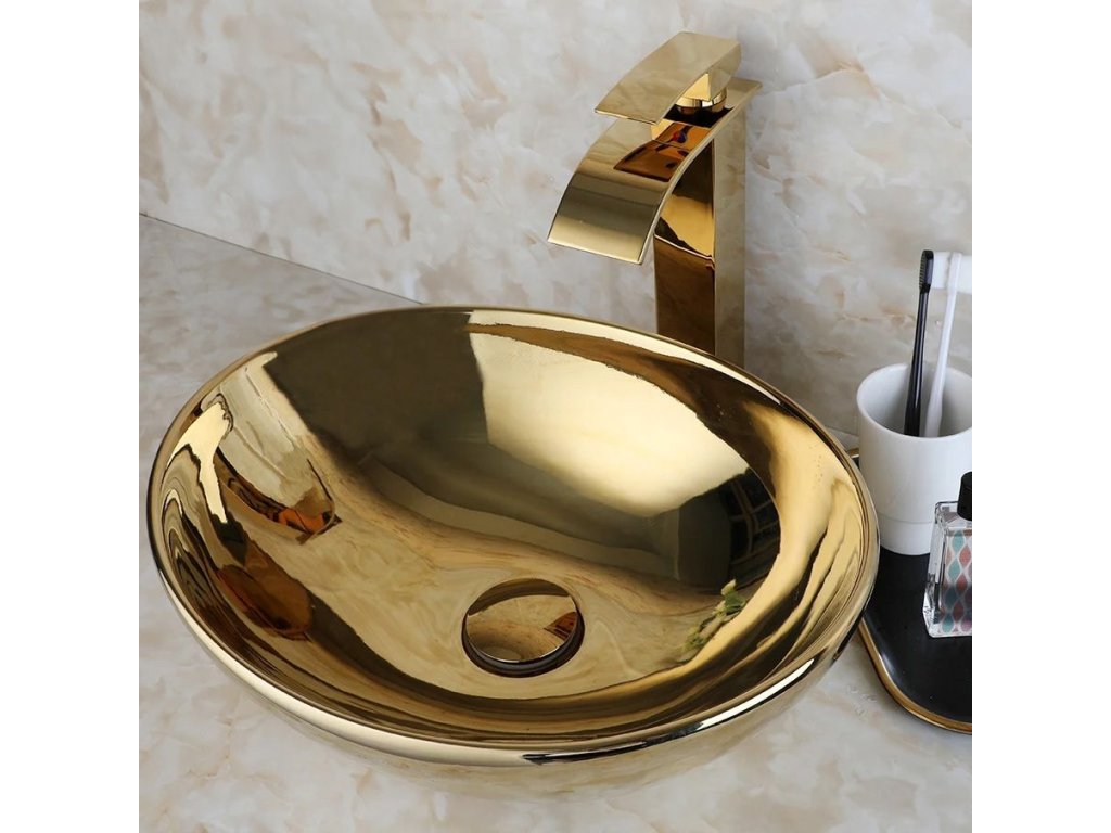 Predstavujeme Vám moderné nové umývadlo na dosku série Rea Sofia. Umývadlo originálneho tvaru je vyrobené z vysoko kvalitných materiálov. Vďaka svojim vlastnostiam splní požiadavky všetkých ľudí, ktorí požadujú dokonalé vlastnosti a parametre podľa svojich predstáv. Ide o perfektný model pre ľudí, ktorí hľadajú predovšetkým funkčné, ale hlavne jednoduché riešenie. Umývadlo je určené na montážnu dosku, ale je možné ho kombinovať aj so skrinkou. Umývadlo je vyrobené v zlatom prevedení a vďaka špeciálnej fáze výroby sa ľahko čistí a je veľmi odolné.