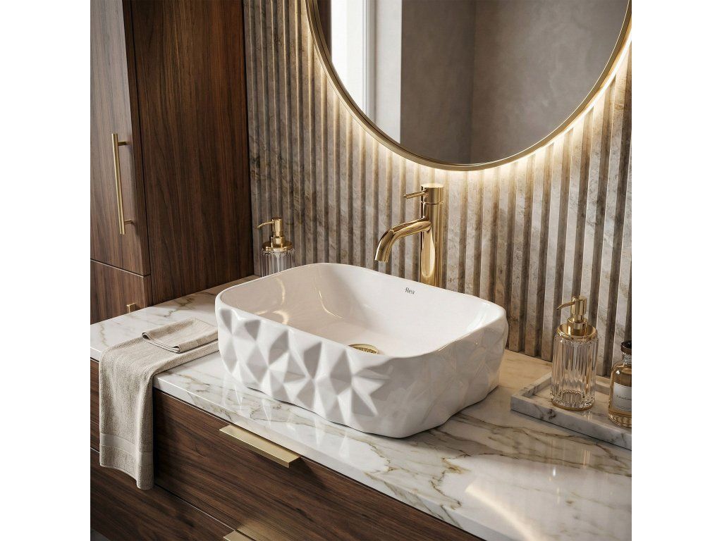 Hľadáte prvok, ktorý premení vašu kúpeľňu a dodá jej nezameniteľný charakter? Umývadlo na dosku Zamia v prevedení biely lesk je stelesnením moderného dizajnu spojeného s najvyššou kvalitou sanitárnej keramiky od REA. Jeho sochárska forma priťahuje pohľady a mení každodennú starostlivosť na luxusný zážitok, pričom do interiéru prináša nádych extravagancie.Unikátna vonkajšia štruktúra – geometrický, sochársky poňatý povrch dodáva umývadlu jedinečný vzhľad, ktorý sa dokonale hodí do moderných aranžmánov a stáva sa ich hlavným dekoratívnym bodom.Vysokokvalitná sanitárna keramika – odolný materiál rezistentný proti poškriabaniu s lesklým povrchom zaručuje bezchybnú belosť a výnimočne jednoduchú údržbu počas dlhých rokov.Kompaktné rozmery a obdĺžnikový tvar – menší rozmer umožňuje optimálne využitie priestoru aj v menších kúpeľniach, pričom zabezpečuje plnú funkčnosť a pohodlie.Všestranné použitie – dizajnový charakter modelu Zamia spôsobuje, že sa výborne hodí nielen do moderných domácností, ale aj do komerčných priestorov, ako sú hotely, SPA salóny alebo interiéry štýlových reštaurácií.Efektná montáž na dosku – tento spôsob inštalácie umožňuje plne vyniknúť sochárskej forme umývadla na doske a ponúka neobmedzené možnosti pri výbere štýlovej umývadlovej batérie. Umývadlo na dosku Zamia je určené pre ľudí, ktorí oceňujú odvážne riešenia a vycibrenú estetiku v každom detaile. Perfektné spracovanie a dôraz na kvalitu keramiky REA robia z tohto produktu nielen krásny, ale aj mimoriadne pôsobivý prvok. Výberom tohto modelu investujete do komfortu a jedinečného štýlu, ktorý dodá vašej kúpeľni luxusný a moderný výraz.