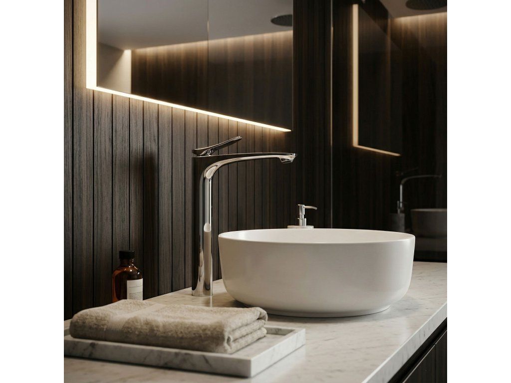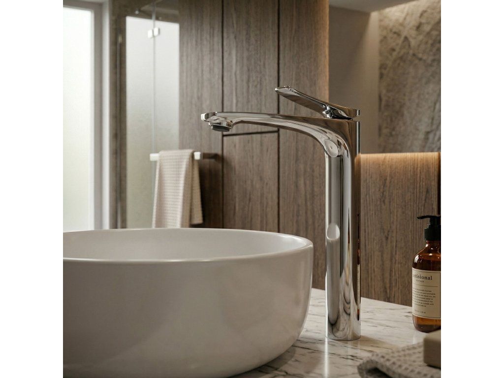 Vysoká umývadlová batéria Vision vo farbe chróm je elegantnou voľbou do moderných a luxusných kúpeľní. Štíhla, vysoká forma a jemne profilovaná línia výtoku jej dodávajú ľahkosť, zatiaľ čo nadčasové chrómované vyhotovenie krásne zvýrazňuje čistotu tvaru a prináša do interiéru svieži, moderný charakter.Vysoká konštrukcia na dosku – batéria bola navrhnutá s ohľadom na umývadlá na dosku, zabezpečuje pohodlný priestor na každodenné používanie a zároveň jednotný, elegantný vzhľad celej umývacej zóny.Vyhotovenie vo farbe chróm – lesklý, hladký povrch dodáva armatúre nadčasový vzhľad a výborne sa kombinuje so svetlou keramikou, kameňom aj modernými kúpeľňovými aranžmánmi.Electroplating povrchová úprava – použitá technológia galvanického pokrytia povrchu zvyšuje odolnosť armatúry voči každodennému používaniu, podporuje trvácnosť vyhotovenia a pomáha dlhšie zachovať estetický lesk a elegantný vzhľad batérie.Masívne telo – odolná konštrukcia zabezpečuje stabilitu, odolnosť pri každodennom používaní a estetický vzhľad po dlhý čas.Keramická kartuša – zodpovedá za plynulú a presnú reguláciu teploty a prúdu vody, čo sa premieta do komfortu a spoľahlivého fungovania armatúry.Štíhly, moderný dizajn – harmonicky vedený tvar a jemne zdvihnutá páka dodávajú batérii decentný dizajnérsky charakter, ideálny pre elegantné prémiové kúpeľne.Výberom vysokej umývadlovej batérie Vision Chróm získate spojenie štýlu, funkčnosti a nadčasovej elegancie. Ide o výnimočný prvok vybavenia, ktorý dokonale podčiarkne charakter umývadla na dosku a dodá celej aranžácii moderné, luxusné zakončenie.