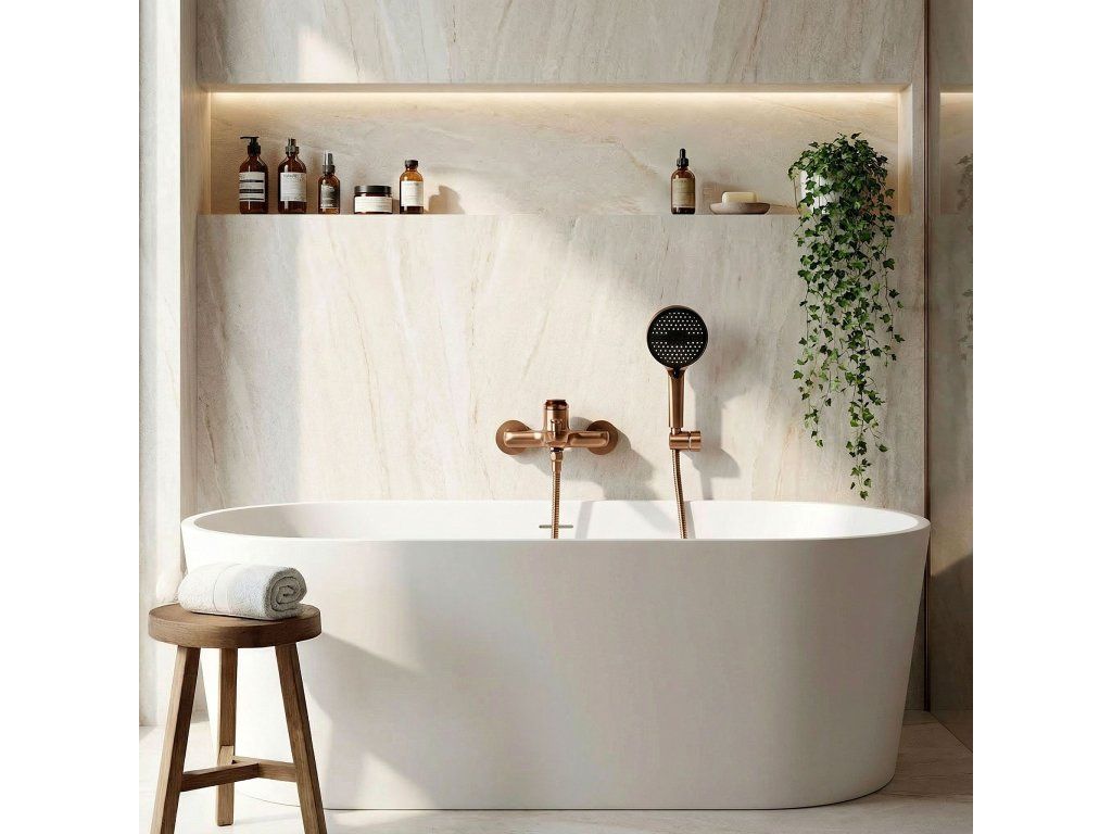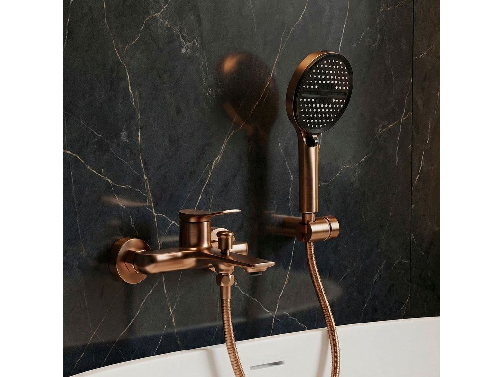 Vaňová batéria Vision v brúsenom vyhotovení je elegantnou voľbou do moderných a prepracovaných kúpeľní. Jej štíhla, výrazná forma, nástenný spôsob montáže a saténový brúsený povrch jej dodávajú ľahkosť a zvýrazňujú moderný charakter kúpacej zóny. Súprava so sprchovou hlavicou predstavuje praktické a estetické riešenie na každodenné používanie.Nástenná montáž batérie – riešenie, ktoré umožňuje vytvoriť usporiadanú a elegantnú zónu pri vani a výborne sa hodí do moderných kúpeľňových aranžmánov.Súprava so sprchovou hlavicou – batéria je vybavená praktickou hlavicou s nástenným držiakom, čo zvyšuje komfort používania a uľahčuje každodenné využívanie vane. Hlavica ponúka štandardné režimy prúdu ako aj prúd typu „bidetka“ umiestnený na hornej časti hlavice, čo výrazne uľahčuje udržiavanie čistoty v sprchovej zóne.Brúsené vyhotovenie – saténový povrch dodáva armatúre nadčasový vzhľad, ktorý sa ideálne hodí do elegantných kúpeľní.PVD povlak – zaručuje odolnosť voči mechanickému poškodeniu, korózii a zmenám farby.Pevné telo – odolná konštrukcia zabezpečuje stabilitu, odolnosť pri každodennom používaní a estetický vzhľad po dlhý čas.Keramická kartuša – zabezpečuje plynulú a presnú reguláciu teploty a prúdu vody, čo sa premieta do pohodlia a spoľahlivej prevádzky batérie.Moderný dizajn – jemne profilované telo, plochý výtok a subtílne zdvihnutá páka dodávajú batérii elegantný, dizajnový charakter, ideálny do moderných prémiových kúpeľní.Výberom vaňovej batérie Vision získavate spojenie štýlu, funkčnosti a pohodlia pri používaní. Je to prepracovaný prvok vybavenia, ktorý efektne zvýrazňuje kúpacej zónu a dodáva celej aranžácii moderné, štýlové a elegantné zakončenie.