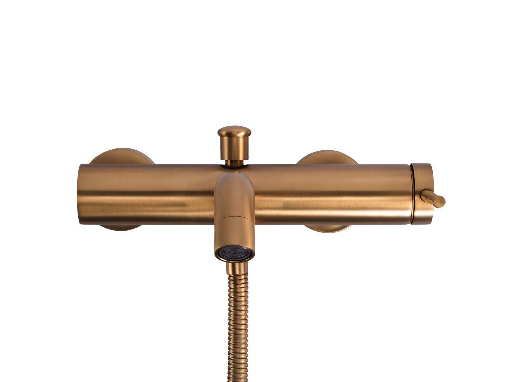 Funkčná a moderná vaňová batéria Spot v odtieni brúsená meď je dokonalou kombináciou elegancie a praktickosti. Štýlovo dopĺňa kúpeľňu a zachováva bezchybný vzhľad i estetiku interiéru. Batéria je určená na nástennú montáž, vďaka čomu sa hodí do moderných aj klasických kúpeľní. Kartáčovaná meď. Telo je vyrobené z vysoko kvalitnej mosadze, pokrytej trojitou vrstvou v odtieni brúsená meď. Vďaka špeciálnej fáze výroby je batéria mimoriadne trvácna, odolná proti poškriabaniu a ľahko sa čistí, čo z nej robí spoľahlivý prvok kúpeľňového vybavenia.Dodatočné parametre