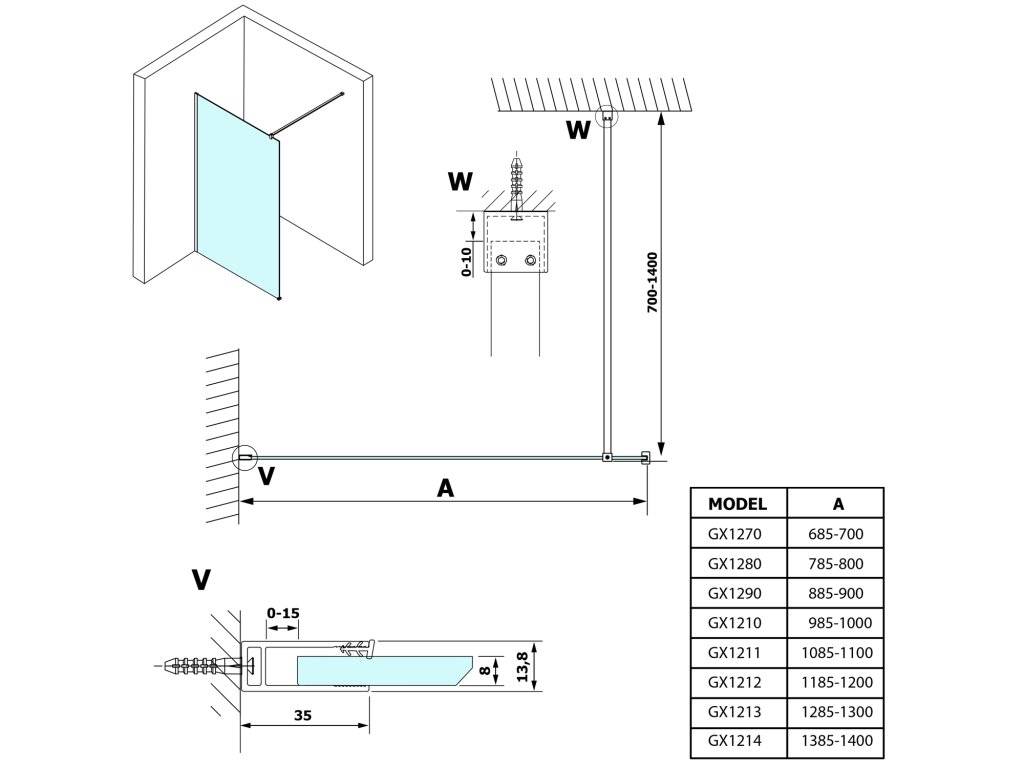 Kategória: | Zásteny walk-in: jednostenné pevné |