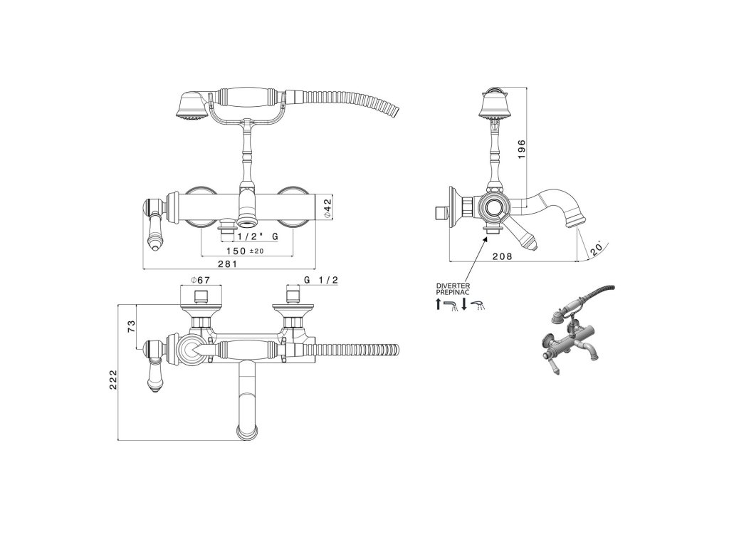 VIENNA nástenná vaňová batéria kompletná, chróm